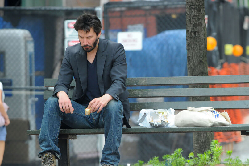 Актер страдает в нью-йоркском метро и на улицах Лос-Анджелеса, на съемочной площадке и даже в рекламной кампании Saint Laurent. У Киану нет телохранителей, а папарацци уважают его меланхолию и не терроризируют его личное пространство.