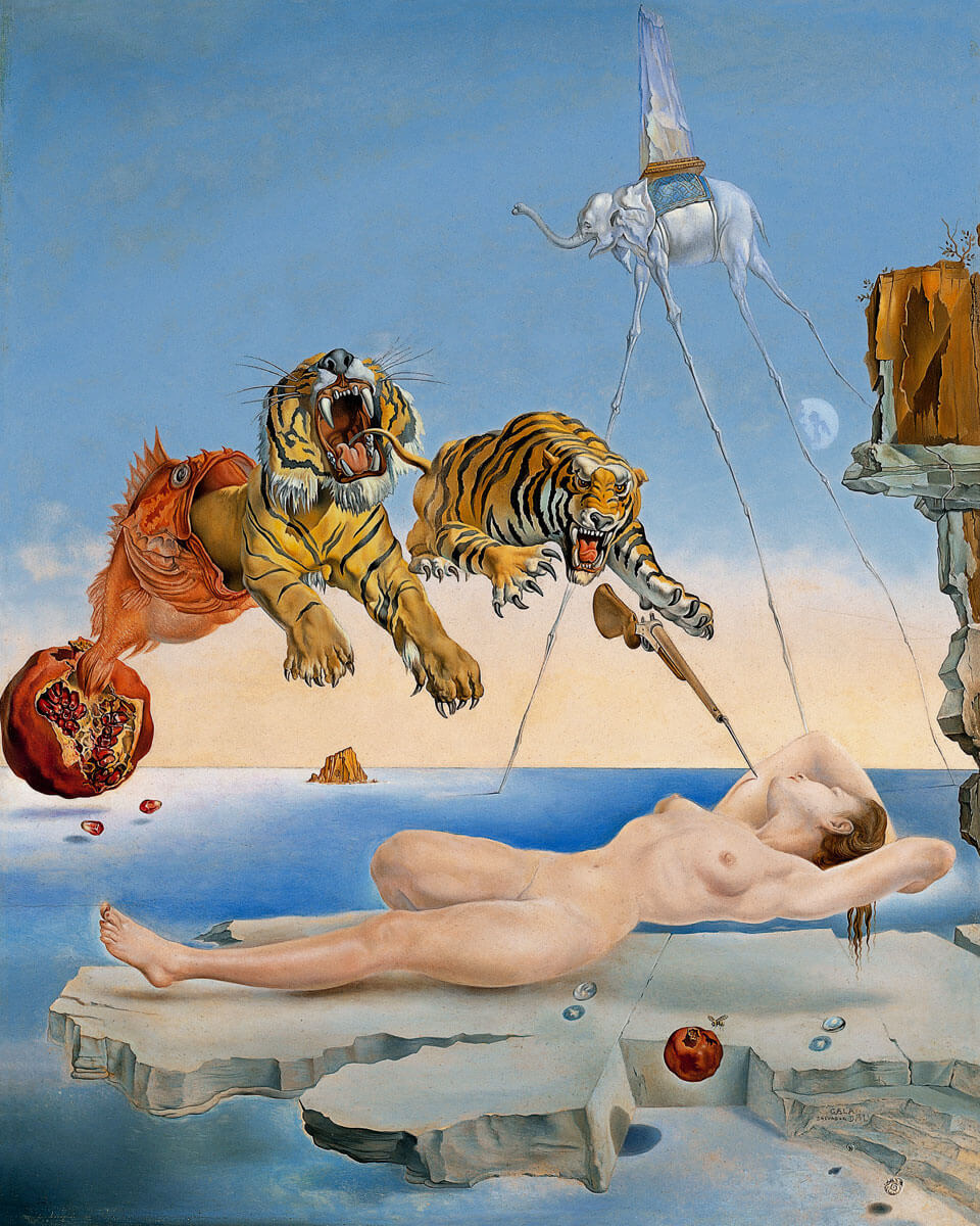 “Сон, вызванный полетом пчелы вокруг граната, за секунду до пробуждения", Сальвадор Дали, 1944