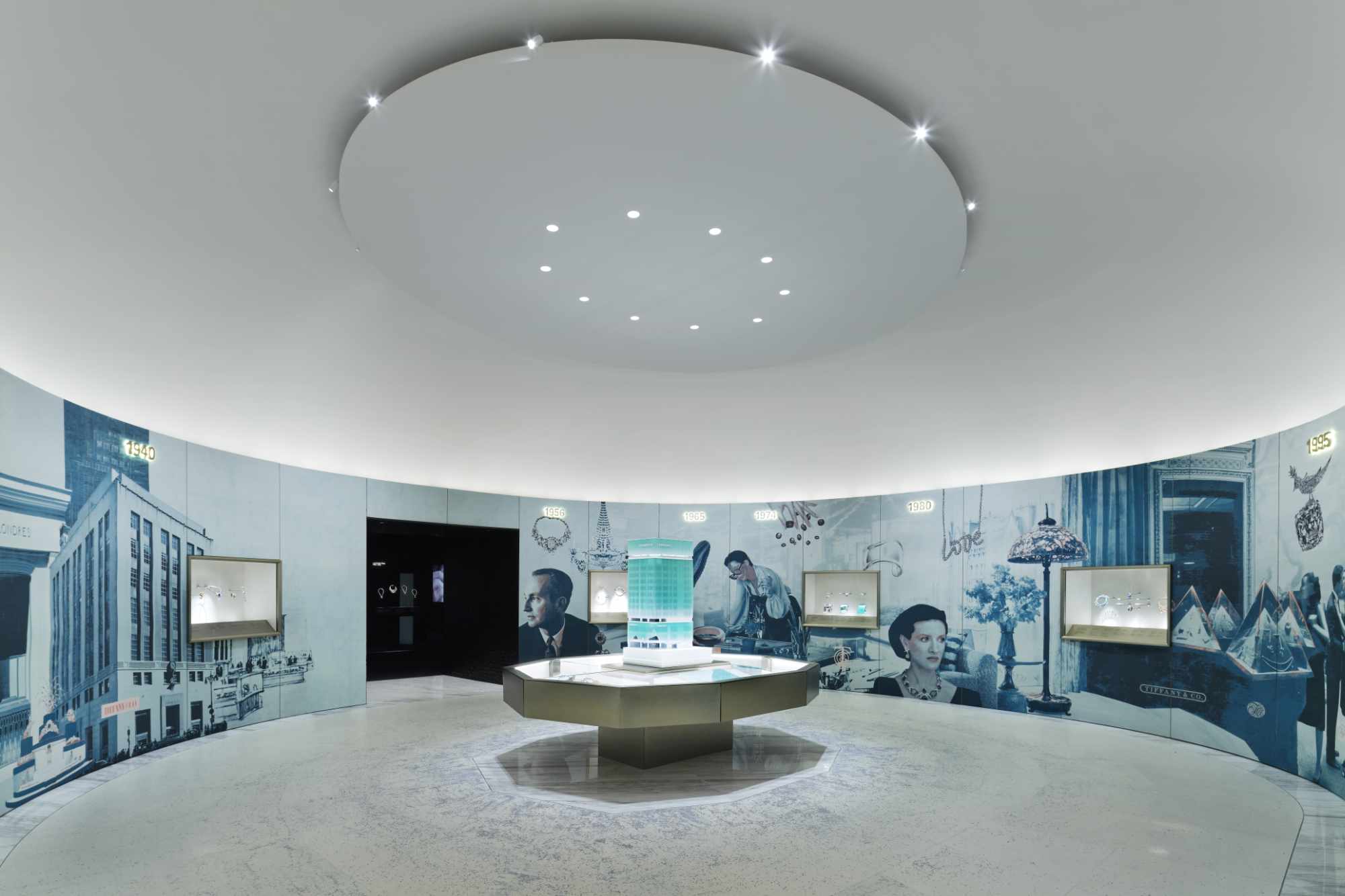 Зв’язок Tiffany & Co. з кінематографом висвітлюється в окремому залі, який очолюють експонати з фільму «Сніданок у Тіффані». Тут ж представлені й архівні образи Одрі Хепберн, створені Givenchy. В інших просторах Дім демонструє спадщину в виготовлені ювелірних предметів для монарших родин, нагород та унікального спортивного спорядження, а зала In Love With Japan підкреслює тісні стосунки Tiffany & Co. з Японією.