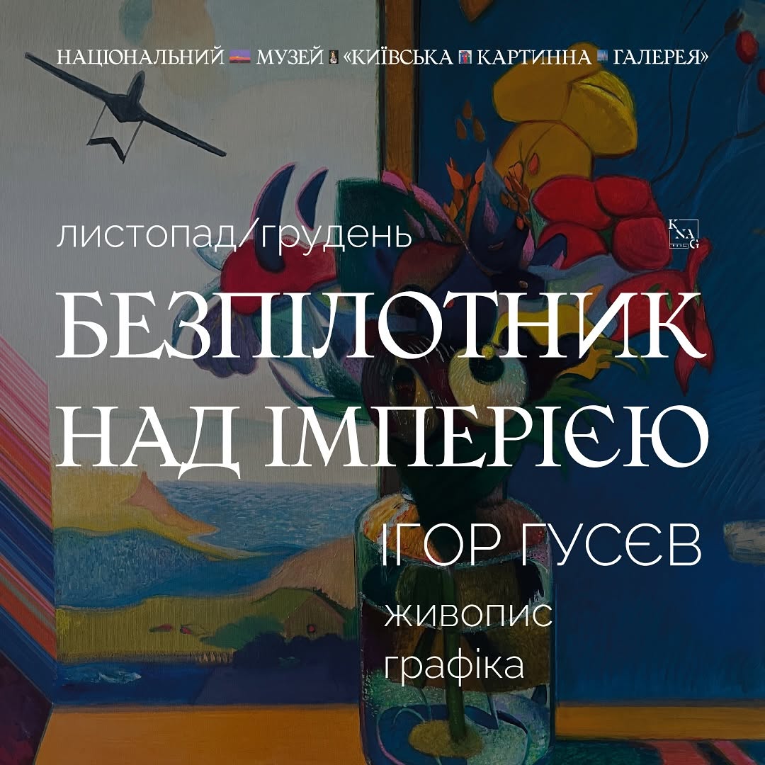 «Вишукані букети квітів на тлі ідеалістичних краєвидів, спокійне й сите життя десь у глибині російської імперії та силует безпілотника — уповноваженого представника України, — який ось-ось перетворить усю цю пишність на хмару диму й пилу», — так з іронією Ігор Гусєв описує свою нову серію.