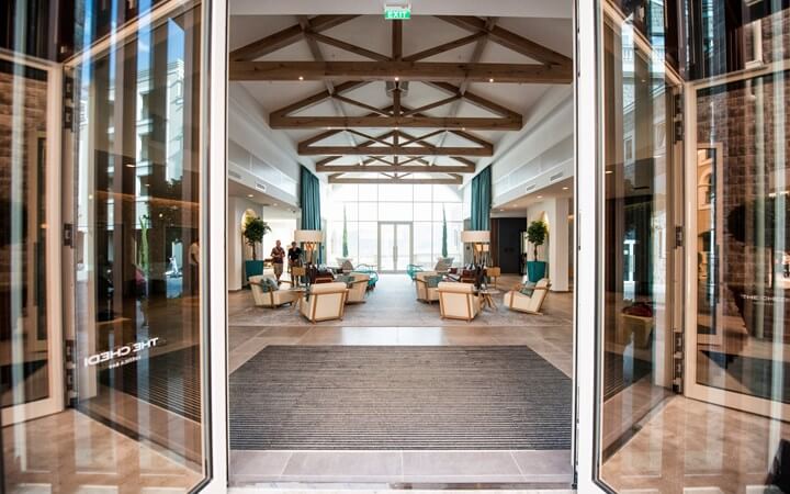 Простирающийся вдоль бухты Траште отель The Chedi Luštica Bay открылся в июле 2018 года. Из 111 номеров и люксов курорта, в оформлении которых отражена морская тема, открывается вид на залив или горы. Два ресторана отеля, элегантный лобби-лаундж, высеченный в скале бар на пляже, крытый и открытый бассейны, а также спа-центр привлекают в отель как местных жителей, так и гостей со всего мира. В зависимости от интересов отдыхающих команда отеля поможет организовать дегустацию черногорских вин и оливкового масла в окрестностях города, занятия парусным спортом или экскурсию в средневековый город Котор, входящий в список Всемирного наследия ЮНЕСКО с 1979 года.