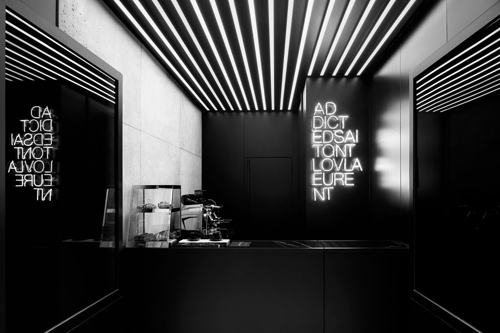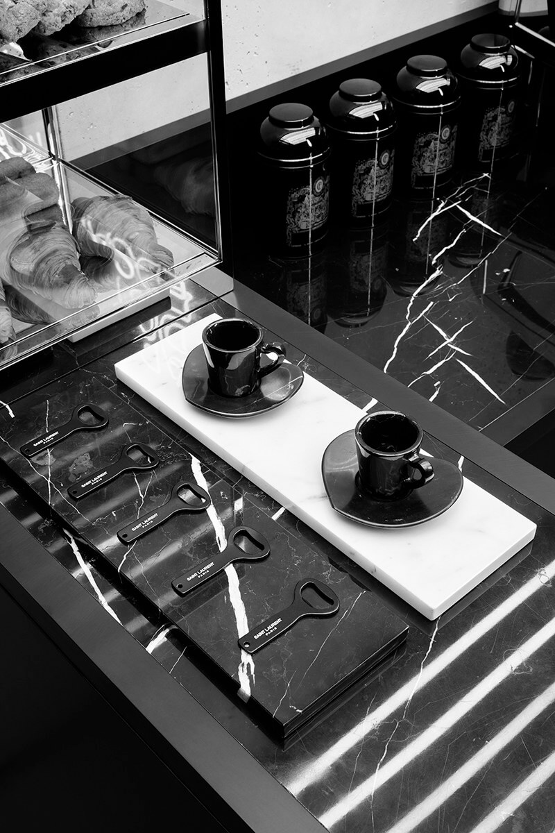 Открытие первого кафе модного дома Saint Laurent приурочено к началу Недели моды в Париже, которая пройдет с 23 сентября по 3 октября. Заведение расположилось на Rue du 29 Juillet, рядом с бутиком Saint Laurent и в двух шагах от сада Тюильри. Интерьер кафе выполнен в черном и белом цветах, с мраморными вставками и неоновым декором.