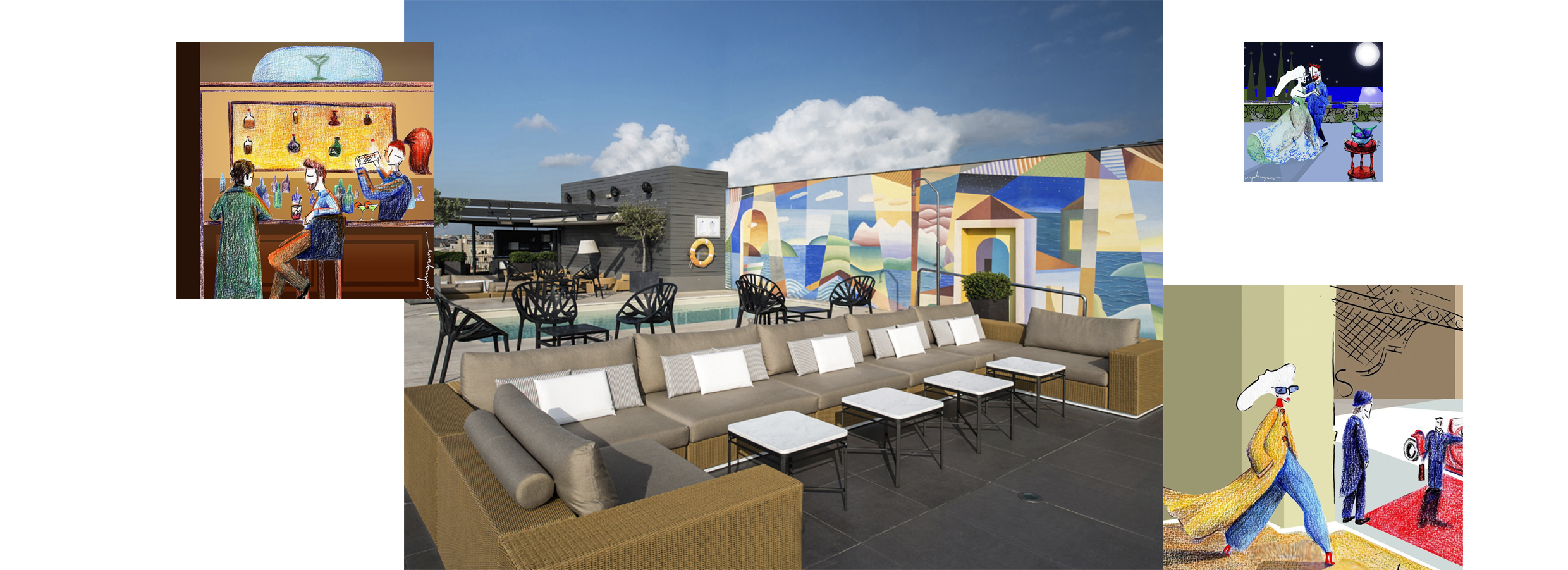 На территории этого арт-отеля представлено более 1000 предметов искусства – они расставлены в номерах, коридорах, лобби и даже ресторанах, чтобы вы любовались прекрасным, пока едите. На 10 этаже отеля находится терраса с панорамным видом на Барселону – тоже, кстати, отличные кадры. Кроме того, там же расположен бассейн, бар и яркие мозаики. Словом, только успевай обрабатывать фото.