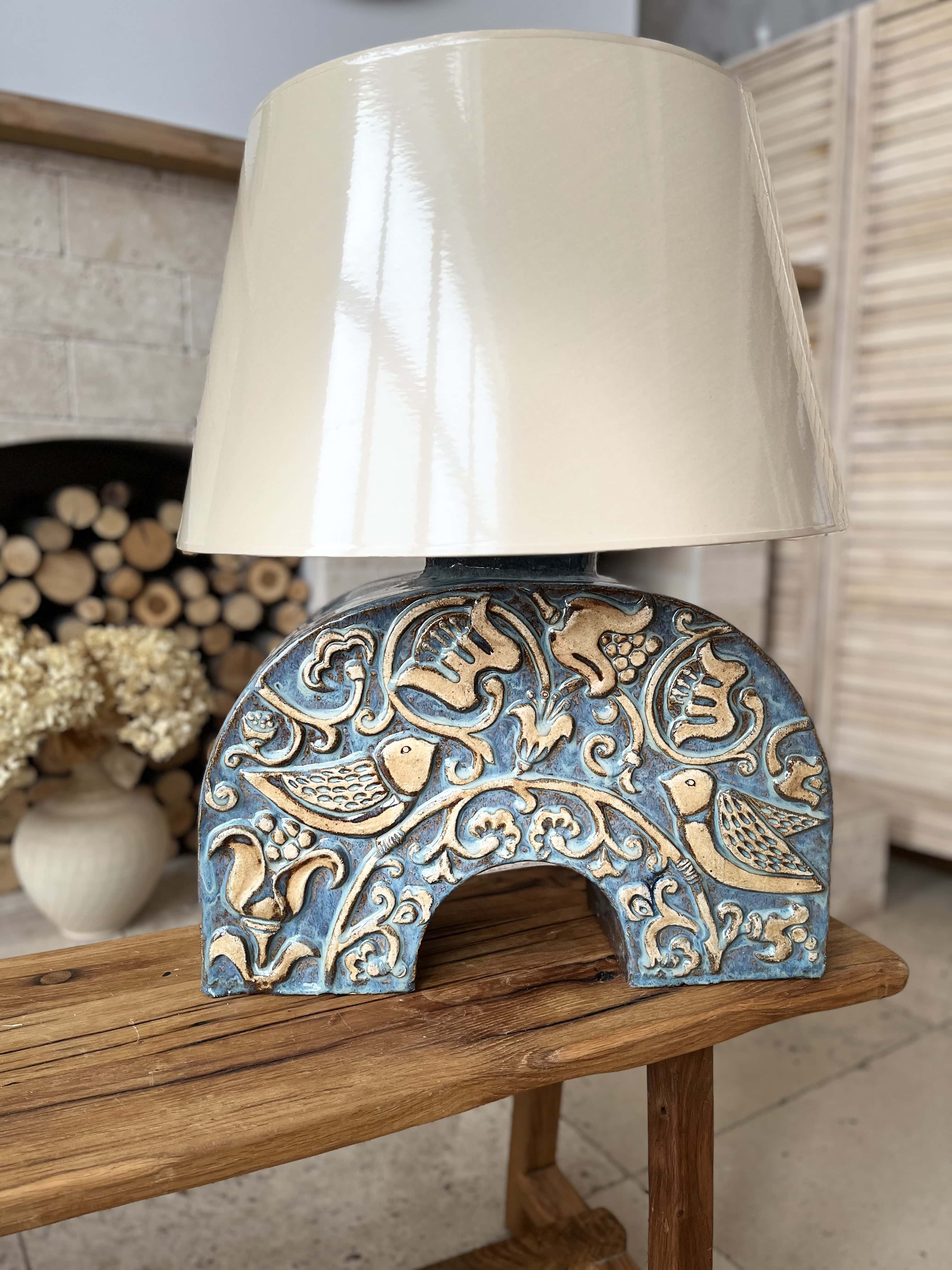 Найпопулярніша модель бренду – лампа у формі арки-райдуги, яка несе побажання добра та захисту для дому. Ці роботи — своєрідний оберіг, який можна передавати наступним поколінням. Yedina Сeramics працюють із шамотом – грубим сортом глини, що додає виробам особливого шарму. Роботи не є витонченими, навпаки — вони як глиняні індійські орнаменти: з явними ознаками ручної роботи, живі, наївні.