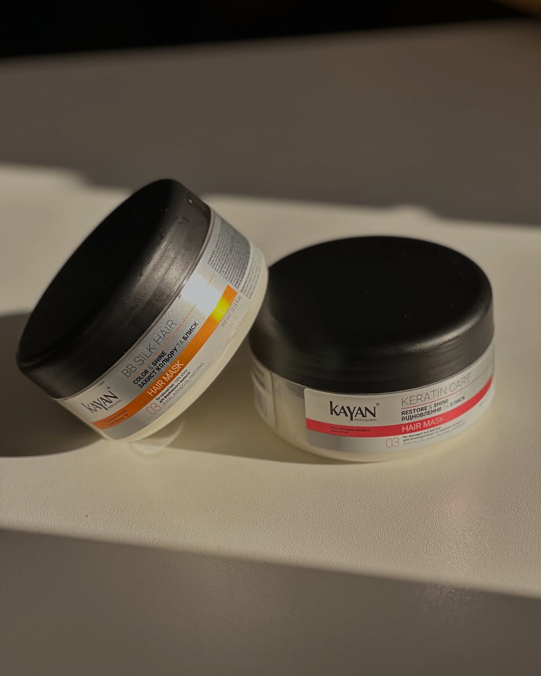 Kayan Professional — професійна косметика для домашнього догляду за волоссям, розроблена з урахуванням стандартів салонних процедур. Формули бренду базуються на високоефективних активних компонентах, що забезпечують відновлення, зміцнення та пролонгацію ефекту професійного догляду. Продукти не витончують волосся, підтримують його щільність, блиск та еластичність, ідеально підходять для фарбованого та пошкодженого волосся.