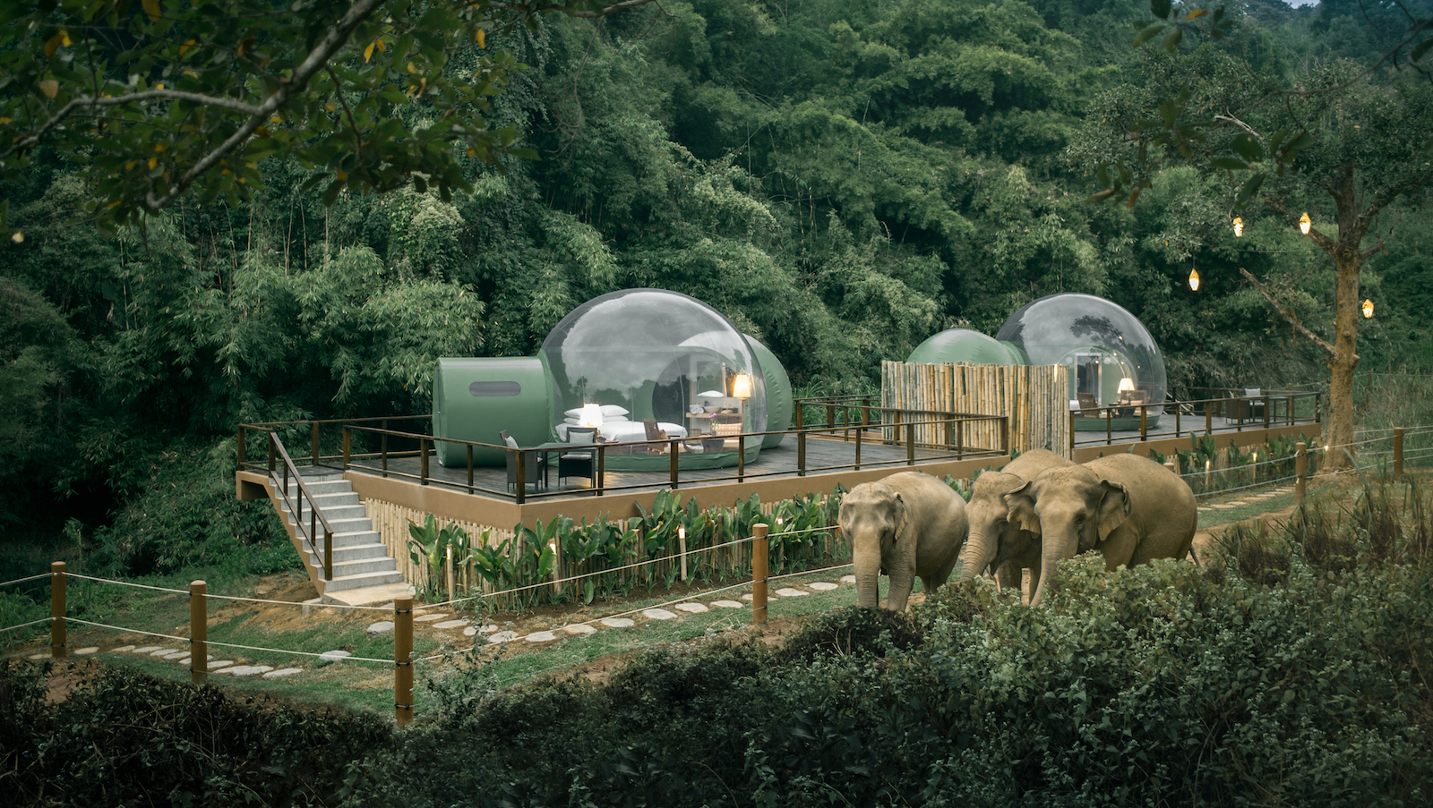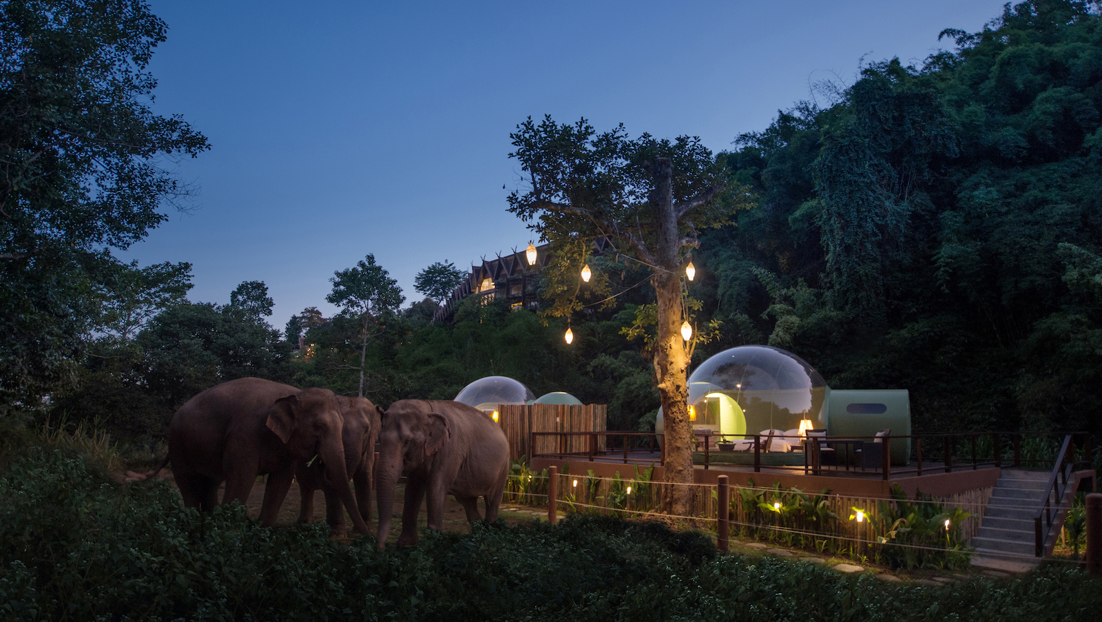 Отель Anantara Golden Triangle Elephant Camp & Resort в городе Чианграй в Таиланде предлагает путешественникам пожить в компании слонов. Курорт расположен недалеко от реки Меконг, посреди джунглей.