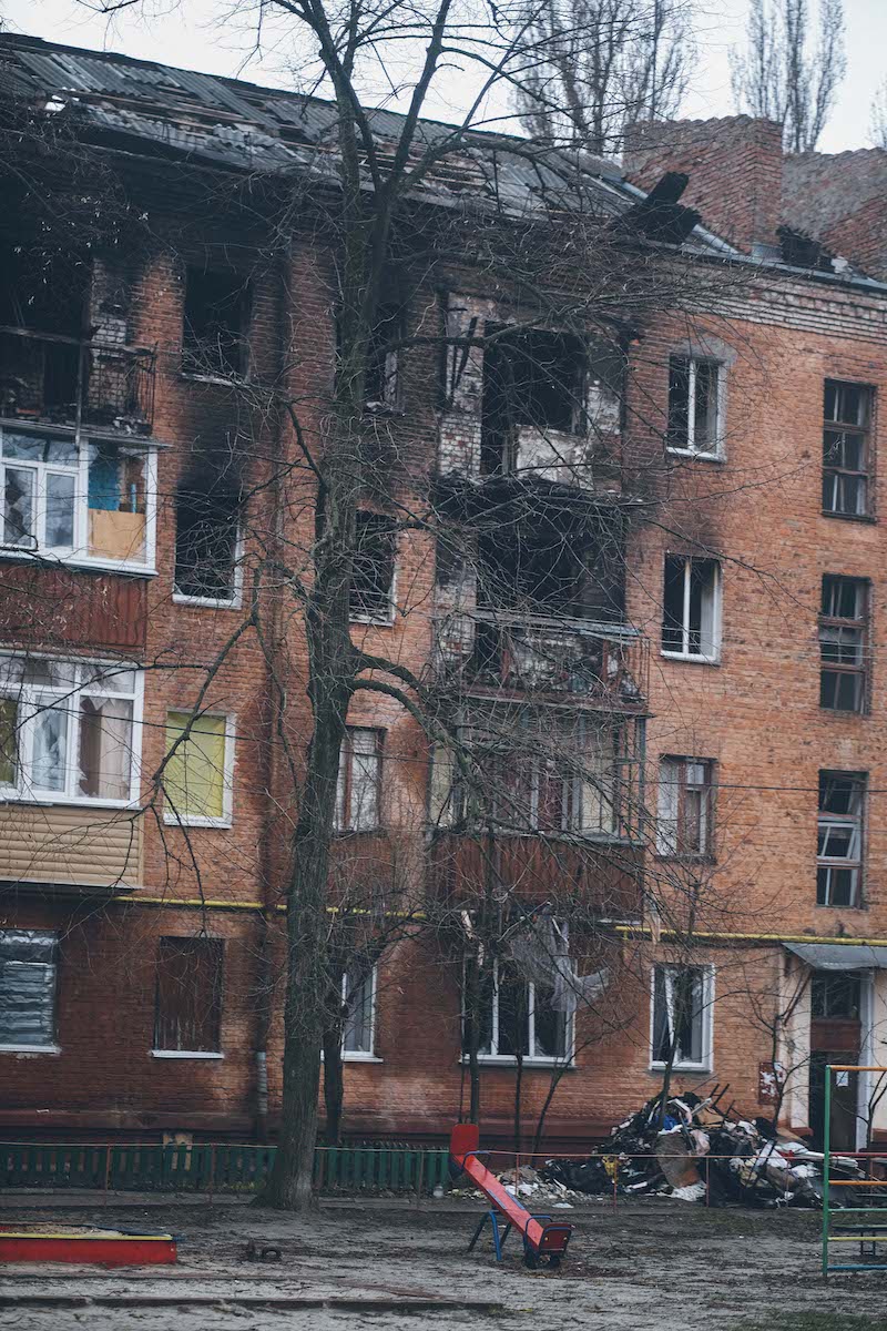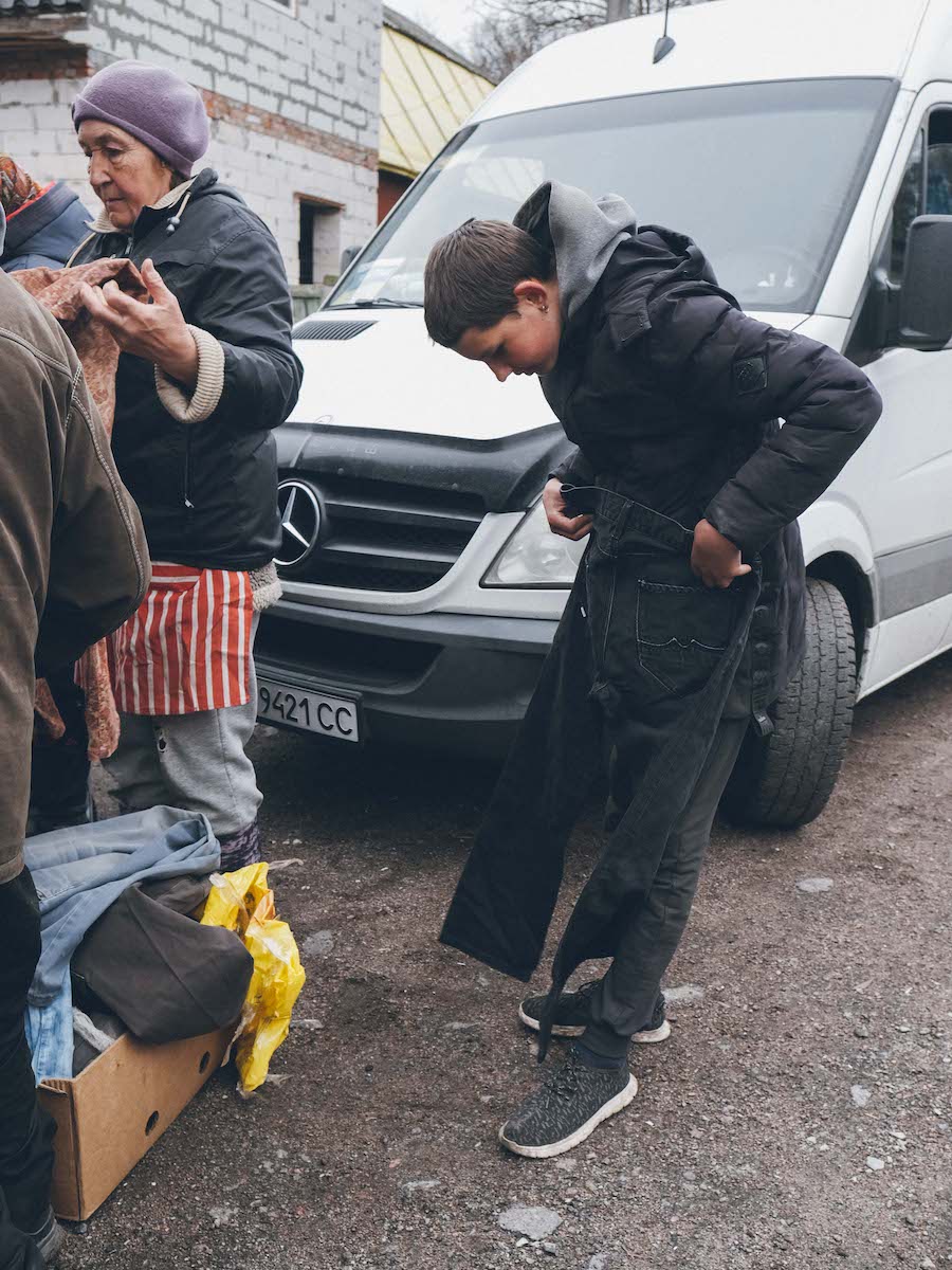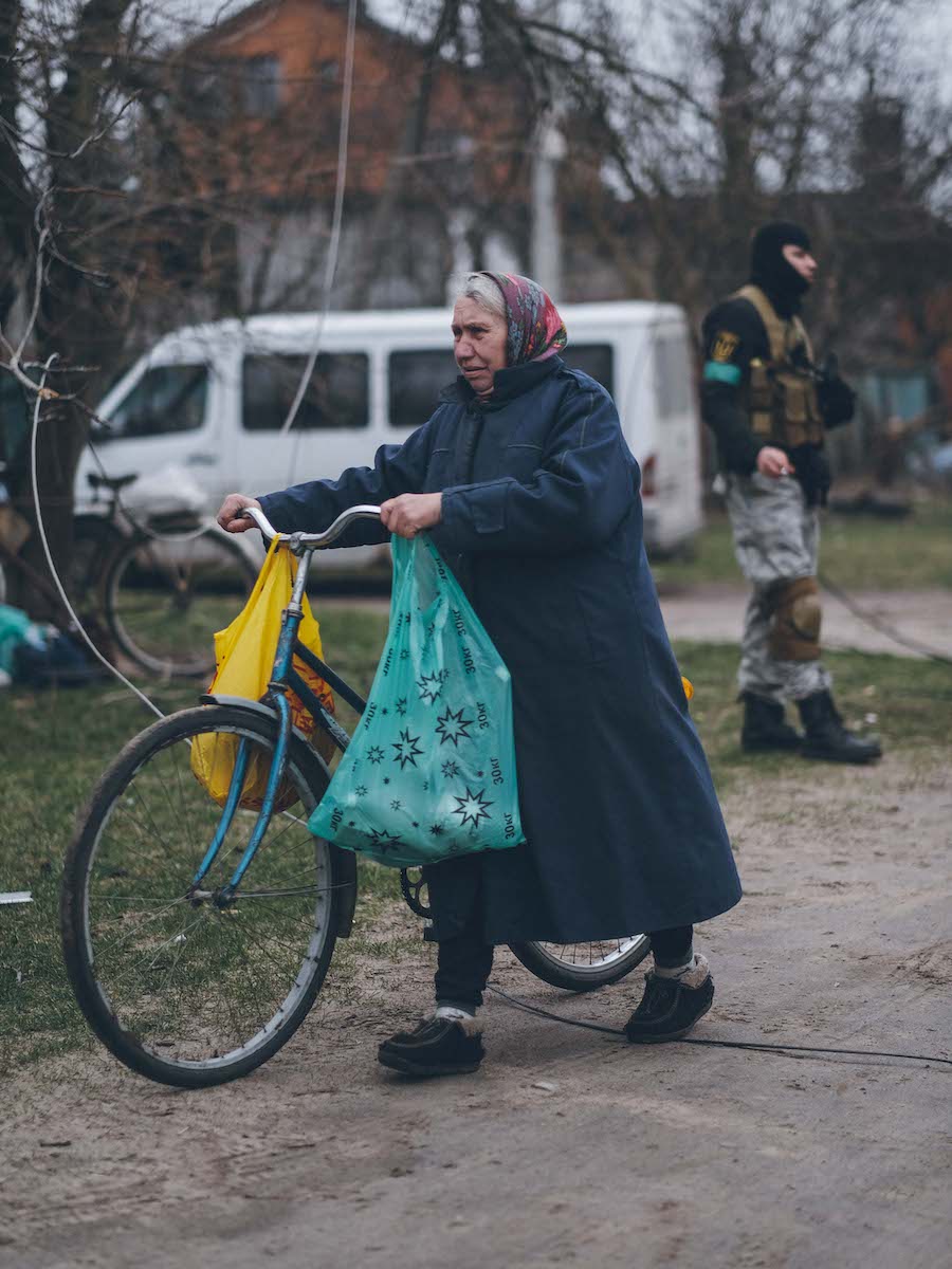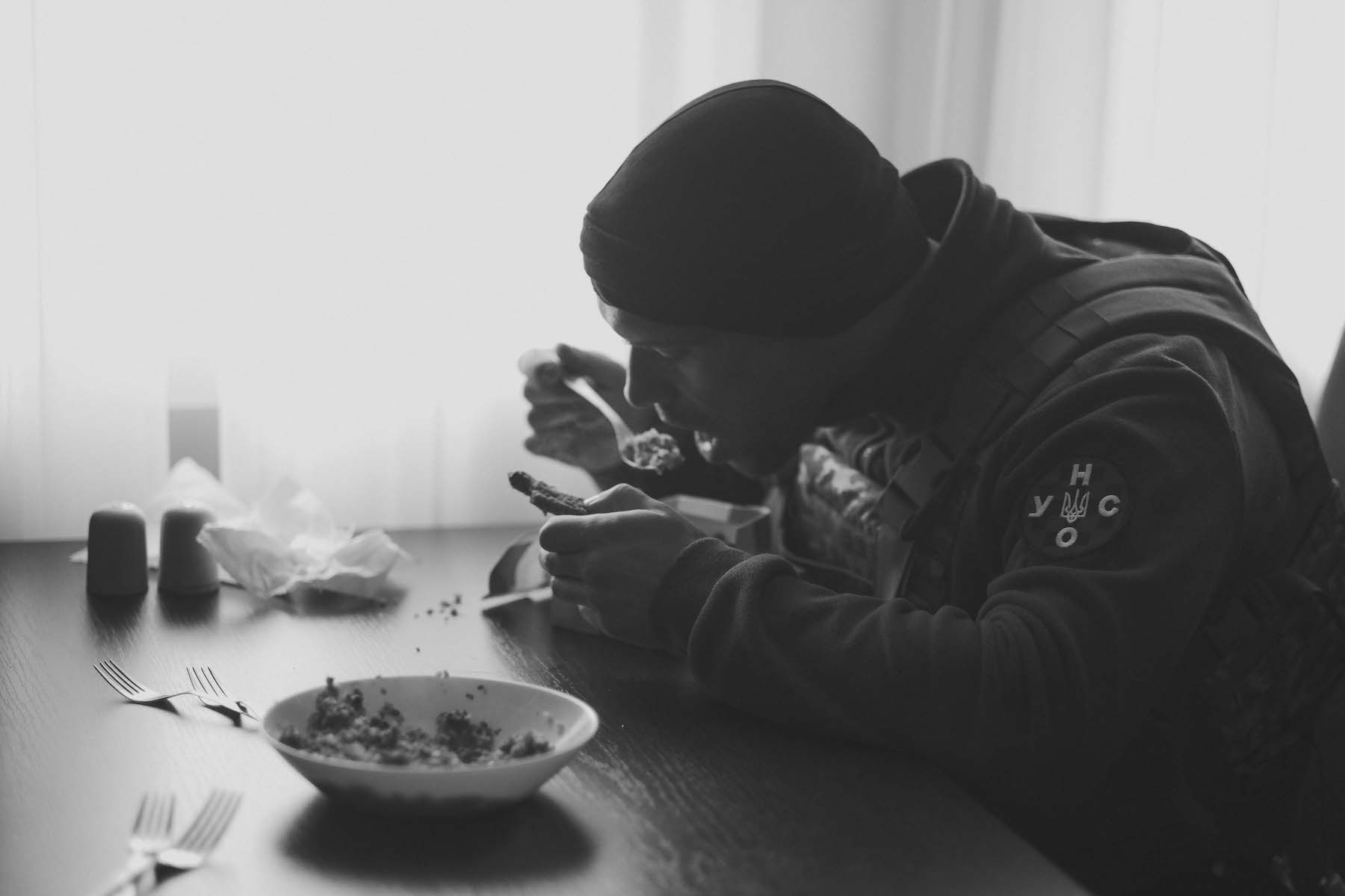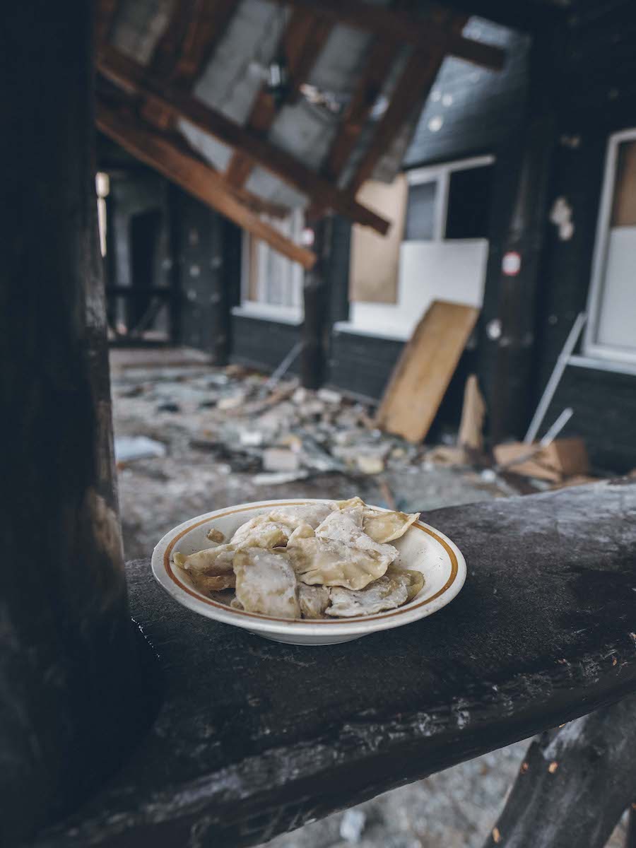 "За два дні на Чернігівщині я побачив колосальну кількість сліз, доброти, болю, скорботи, хоробрості та щирої любові. Сльози українських солдатів, мужніх хлопців, і хоробрість 85-літніх бабусь та жінок зі зростом 150 см, які ховали у себе у підвалі своїх сусідів та односельців, — розповідає фотограф. — Вирви від снарядів вагою 500 кг, у яких можна заховати вантажівку, та свіжі вареники на обід солдату ЗСУ у зруйнованому орками придорожньому кафе. Мені було дуже холодно фізично спати в місцевому готелі без вікон, але неймовірно тепло на душі від думки, що хтось нарешті отримає допомогу, якої так сильно потребував. Як раніше вже не буде, але й ми стали набагато сміливішими та хоробрішими, ніж були раніше. Ми не обирали цю долю, але й не перестали вірити у щасливе майбутнє".