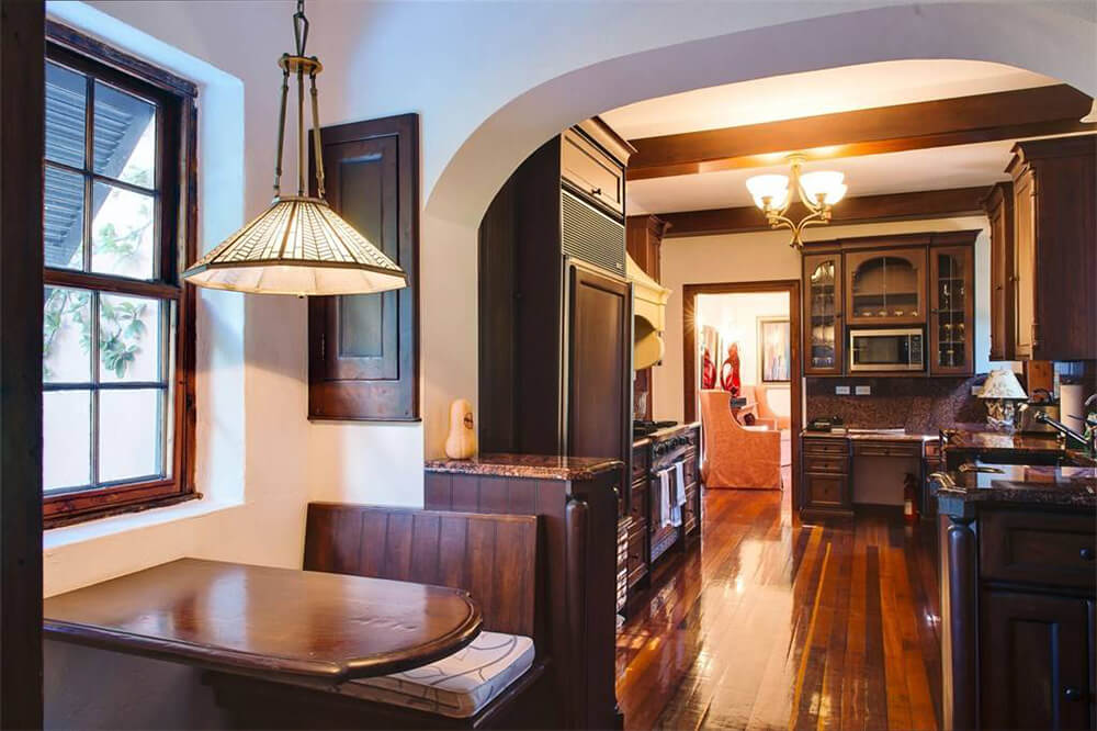 На территории резиденции расположен дом площадью почти в 700 квадратных метров. Он вмещает 8 спален и 8 ванных комнат. Также есть двухэтажный пансион, коттедж с двумя комнатами и однокомнатная квартира.
