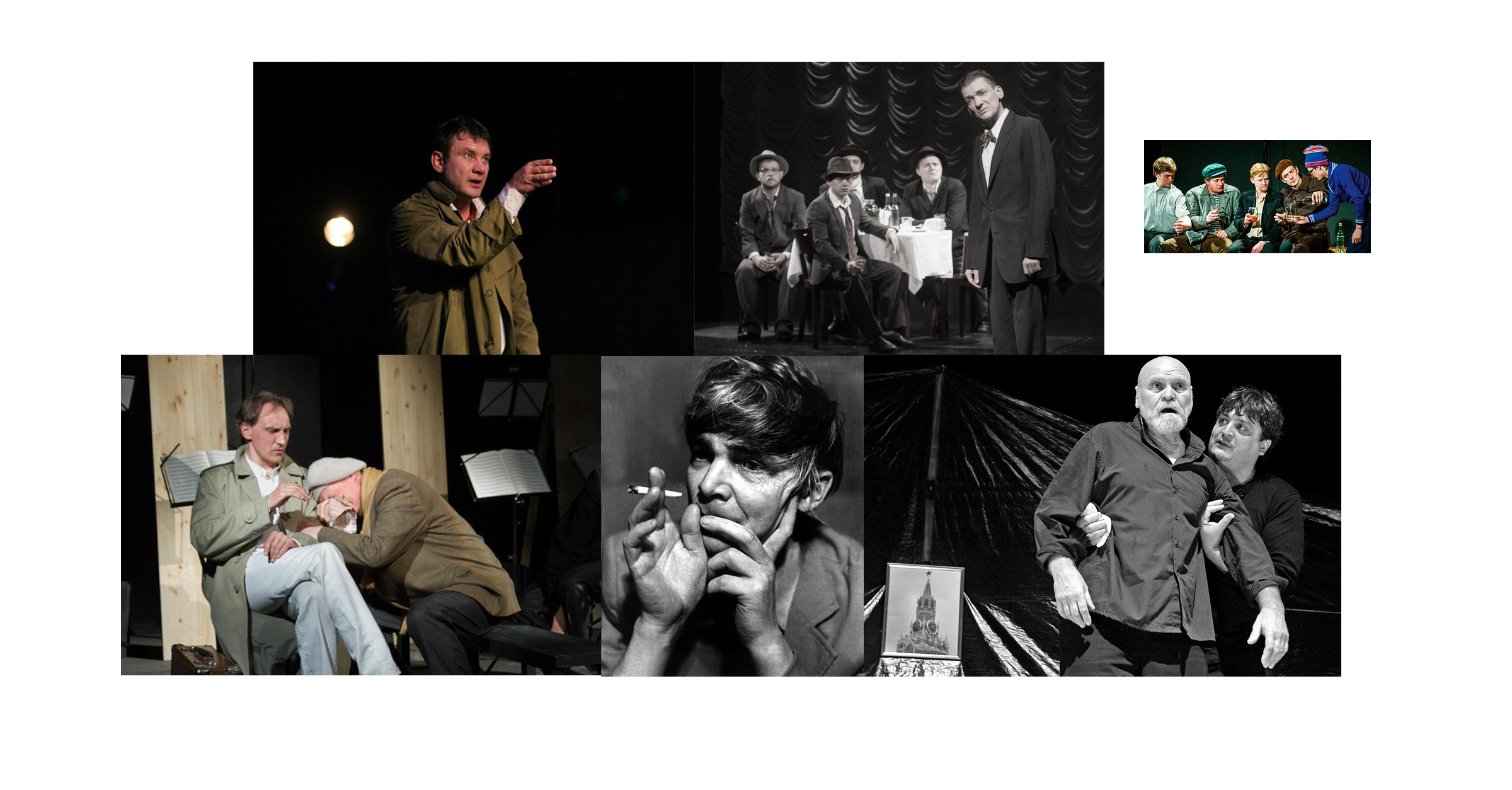 В общем, одно мощное направление — это, конечно, Гоголь, а второй большой претекст — это Чехов. Потому что вечное воззвание "В Москву, в Москву" здесь обыгрывается другим образом. Здесь едут из Москвы. К тому же всегда персонаж Ерофеева жалеет о том, что он не может никак увидеть Кремль. Он все время с бодуна и пьяный ходит и говорит: “Я все время не могу увидеть Кремль”. Это тоже очень важно. Это эфемерность, намек на существование каких-то символов власти, которые не увидишь, потому что это просто фантазмы. Об этом, собственно, и речь.