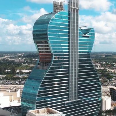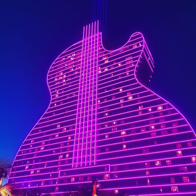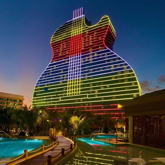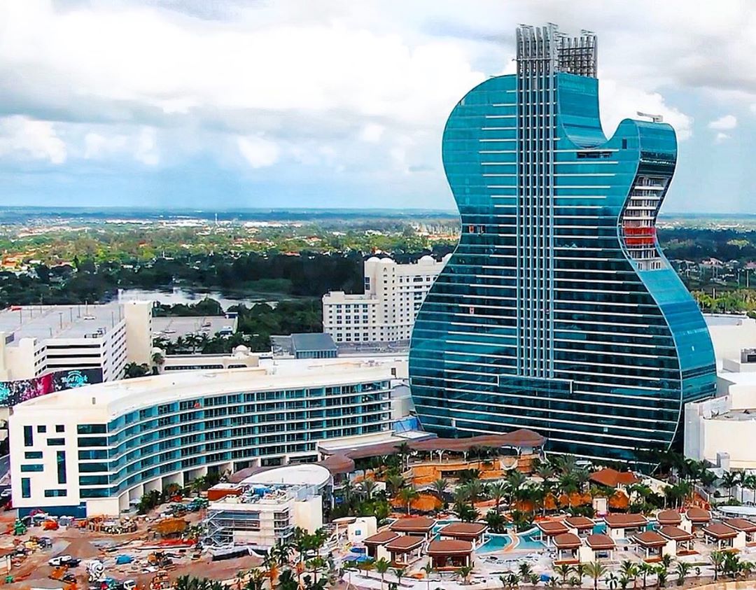 В Голливуде открыли гостиницу Seminole Hard Rock Hotel & Casino, здание которой напоминает по форме гитару. В отеле, высота которого достигает 137 метров, разместилось 638 номеров, бассейн размером в 3 футбольных поля, концерт-холл на 7 тысяч посадочных мест. Помимо этого, в отеле есть спа-салон, рестораны и казино. Цена проекта составила $ 1,2 миллиона.