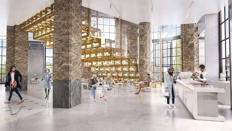В новом универмаге есть фуд-корт, рестораны и кафе. Одно из них открыл дизайнер Симон Порт Жакмюс совместно с рестораном Caviar Kaspia. Прованское Café Citron предлагает традиционные блюда и десерты юга Франции — хлеб, морепродукты, лимонные пироги и домашние джемы. Над интерьером работал сам Жакмюс.