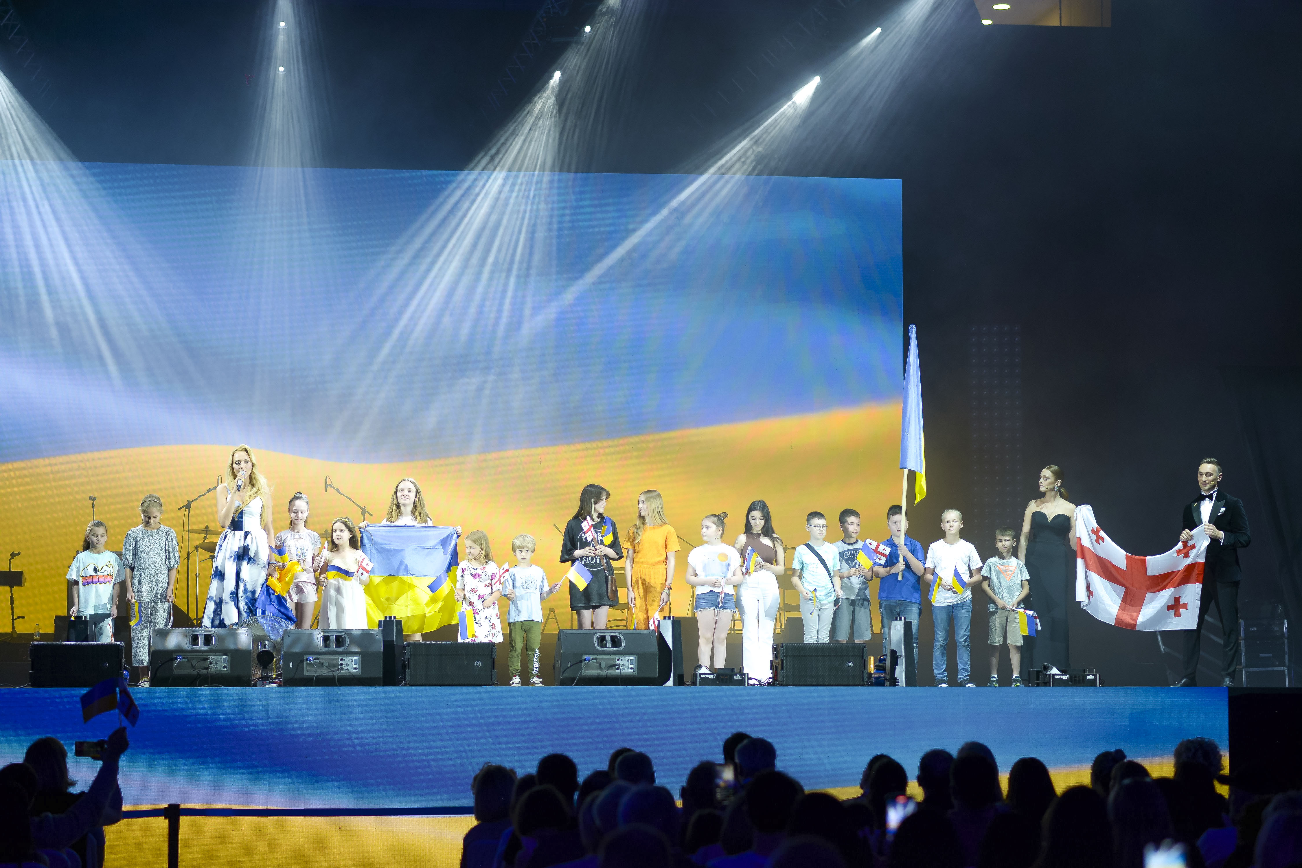Мені та Іраклі. У перші дні повномасштабного вторгнення Росії в Україну ми створили фонд, під егідою якого провели низку гуманітарних акцій: телемарафон, спеціальні репортажі, візит на кордон Польщі та України з гуманітарним вантажем тощо. Благодійний концерт – одна з ідей, у реалізації якої нам допомогло Міністерство культури Грузії. У концерті брали участь усі топові зірки Грузії та українська співачка Оля Полякова.