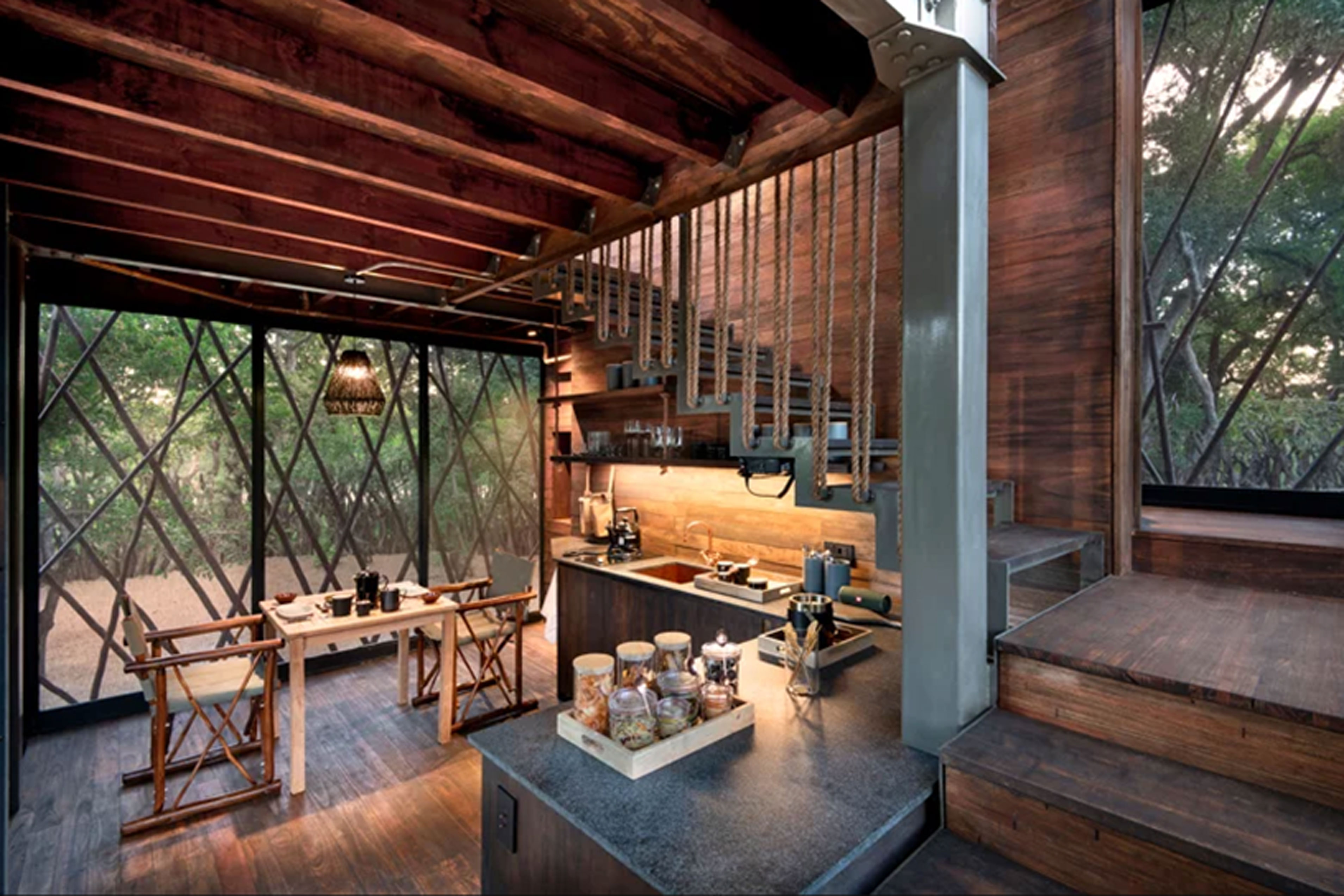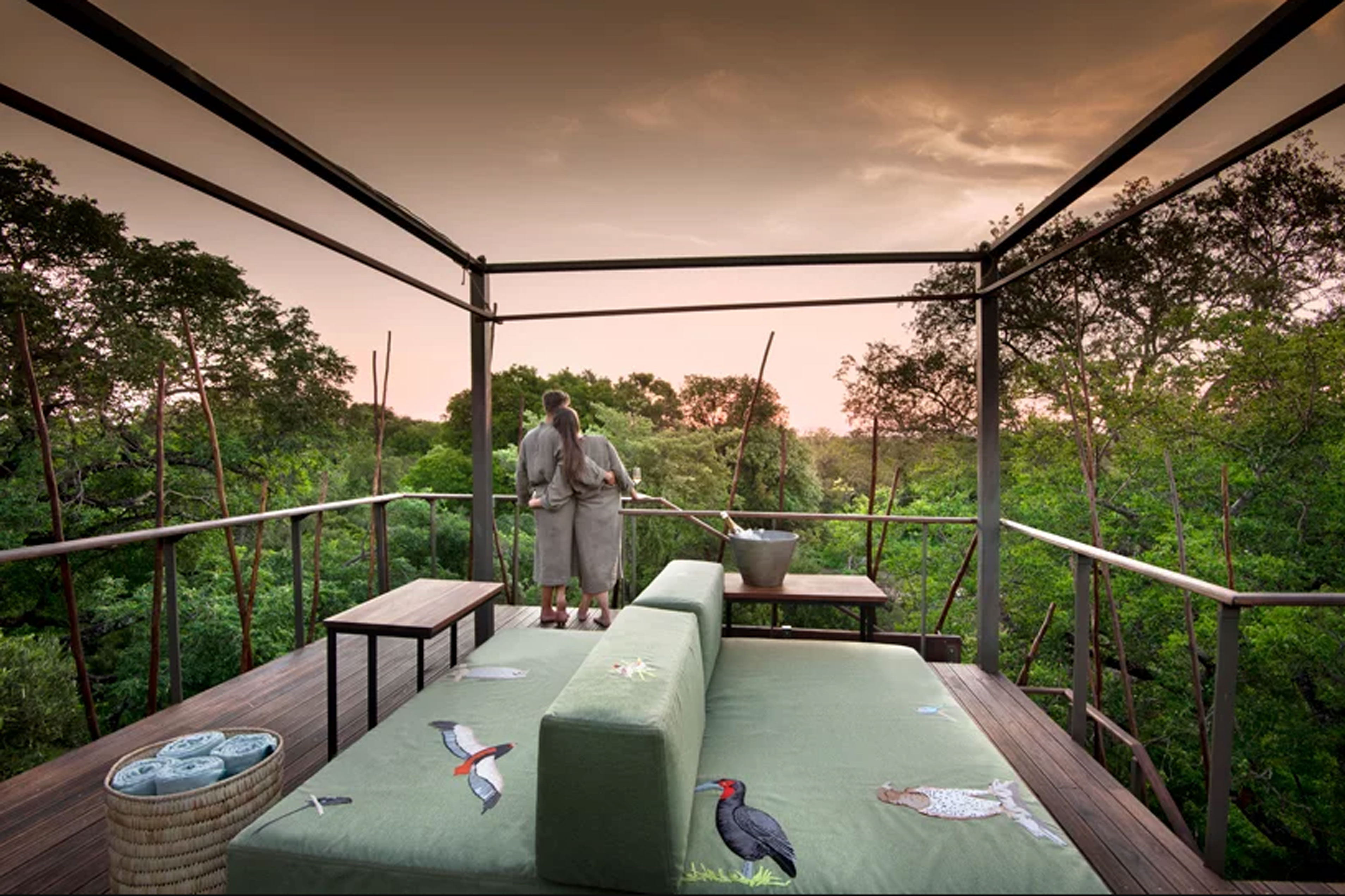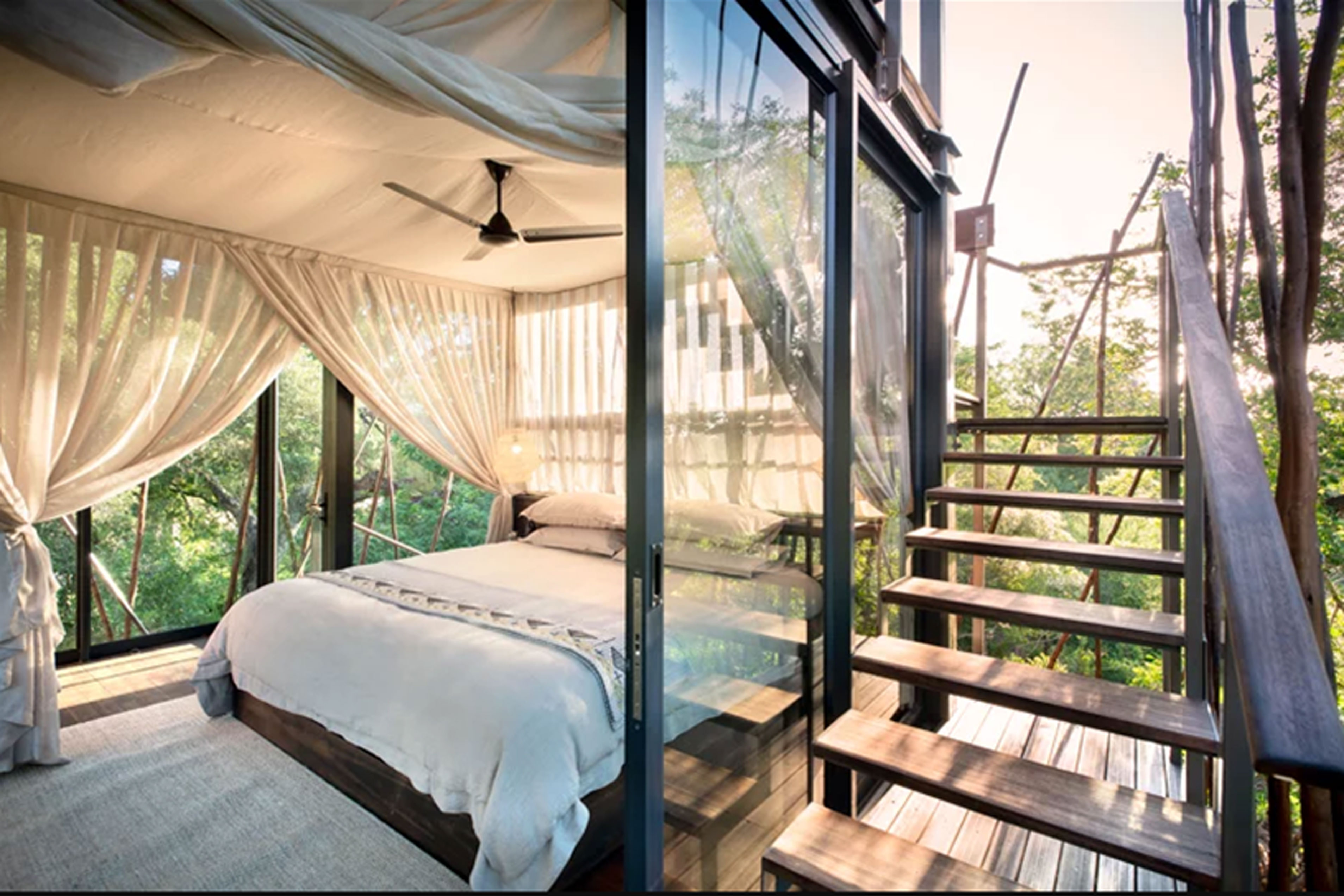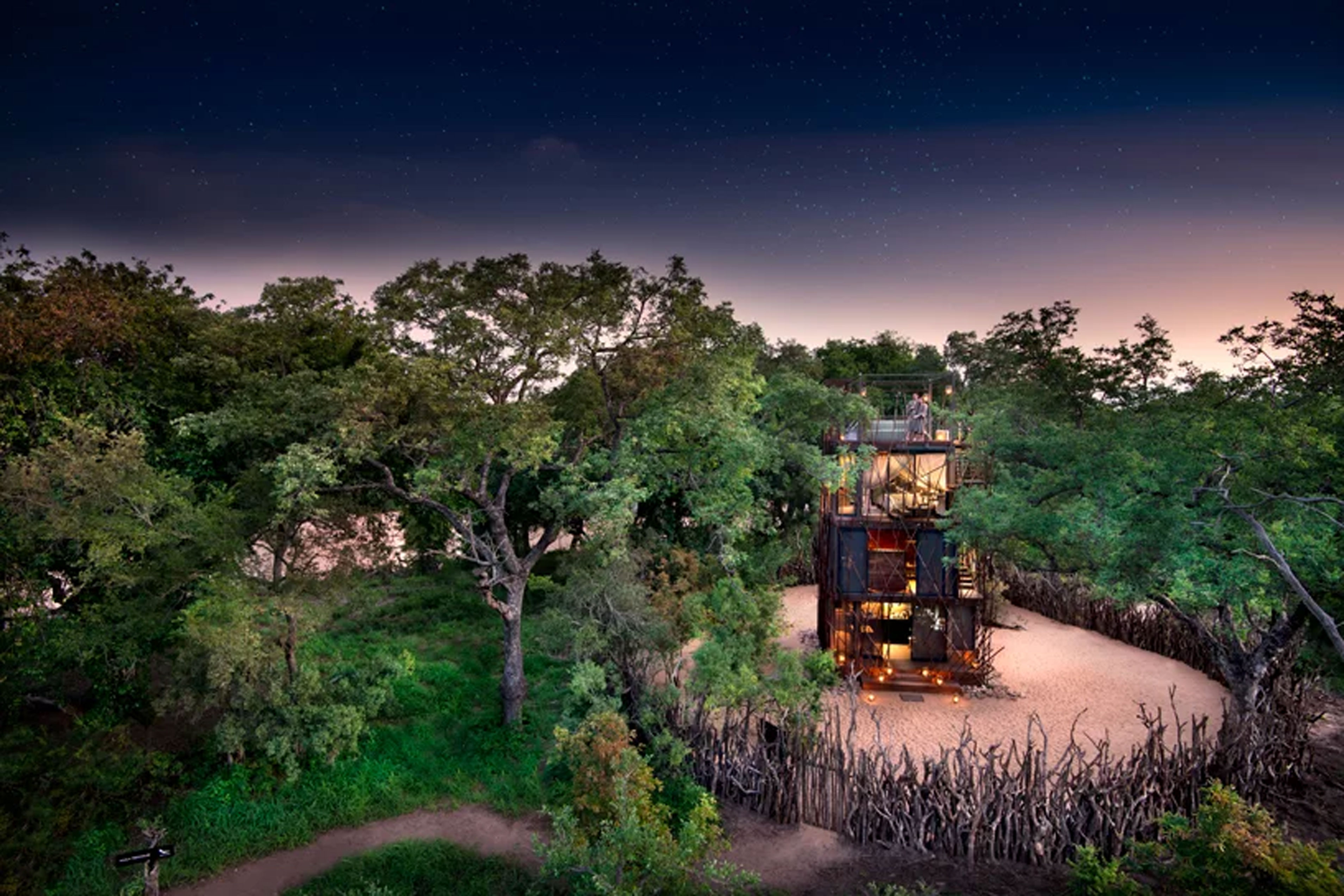 Сеть 5-звездочных отелей AndBeyond предлагает путешественникам арендовать домик на дереве посреди заповедника Ngala Private Game Reserve по соседству с дикими животными. Домик расположен в частном заповеднике площадью 36 тысяч акров в Южно-Африканской Республике, в нем обитают львы, тигры, носороги, слоны, гепарды и другие дикие животные.