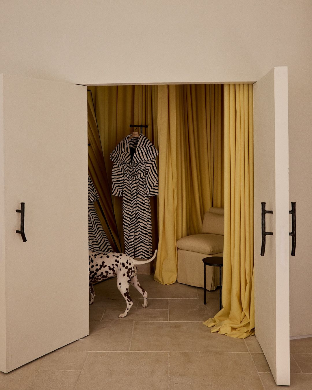Яскравими акцентними деталями в просторі стали бананові шторки в примірочних та пучки пшениці, що, за словами Сімона Порта, формує «прованський попдизайн». Подібно до музейних експонатів, картини та знімки, розташовані на стінах нового бутику, мають підпис на табличках: фотографія Вольфгана Тільманса, гравюра П’єра Боннара тощо. «Я майже все знаходжу сам. Це моя пристрасть», — розповідає дизайнер.