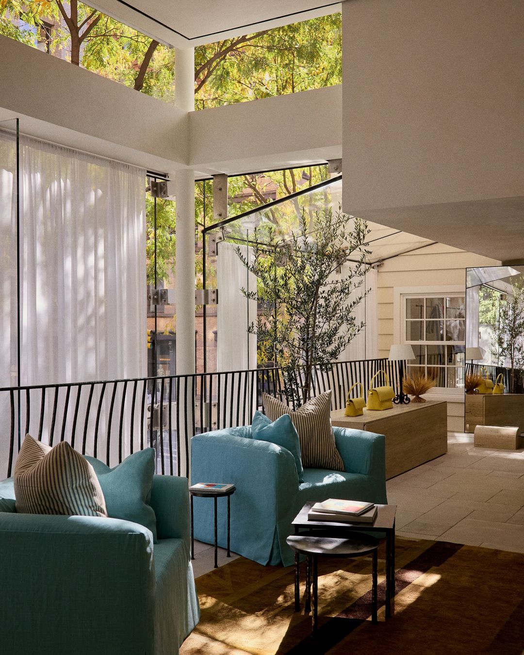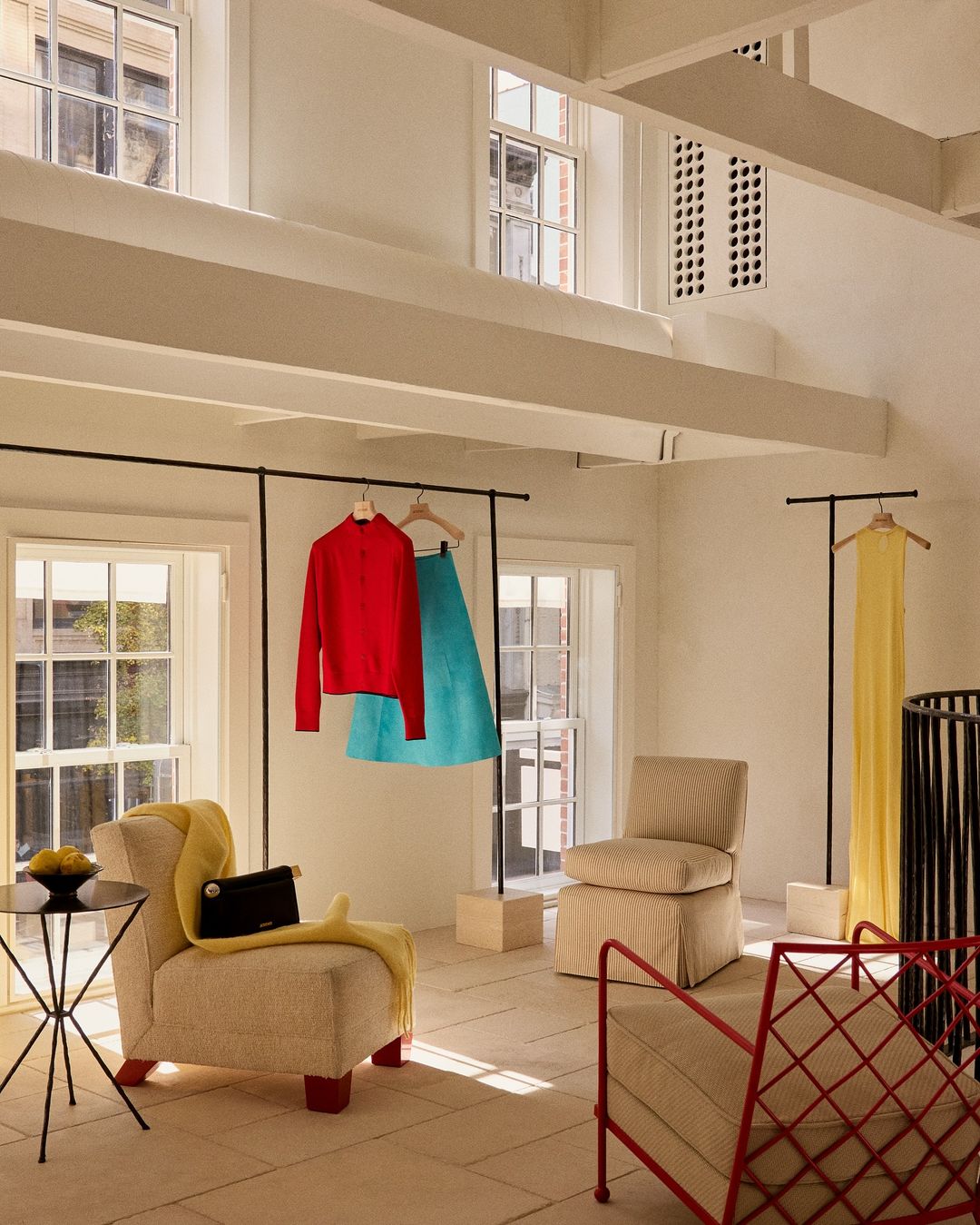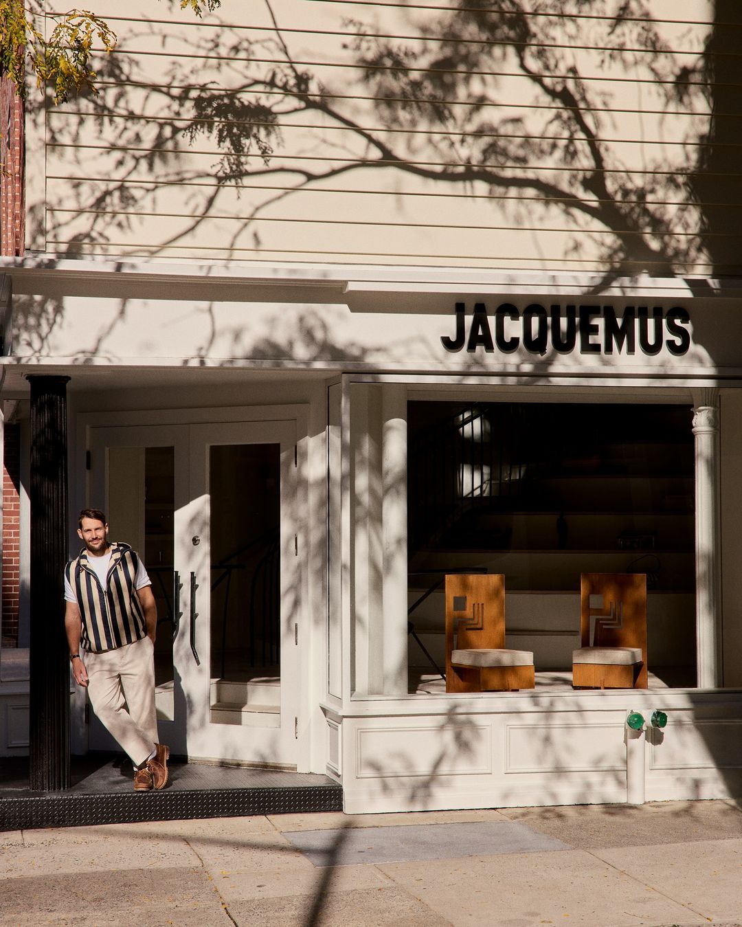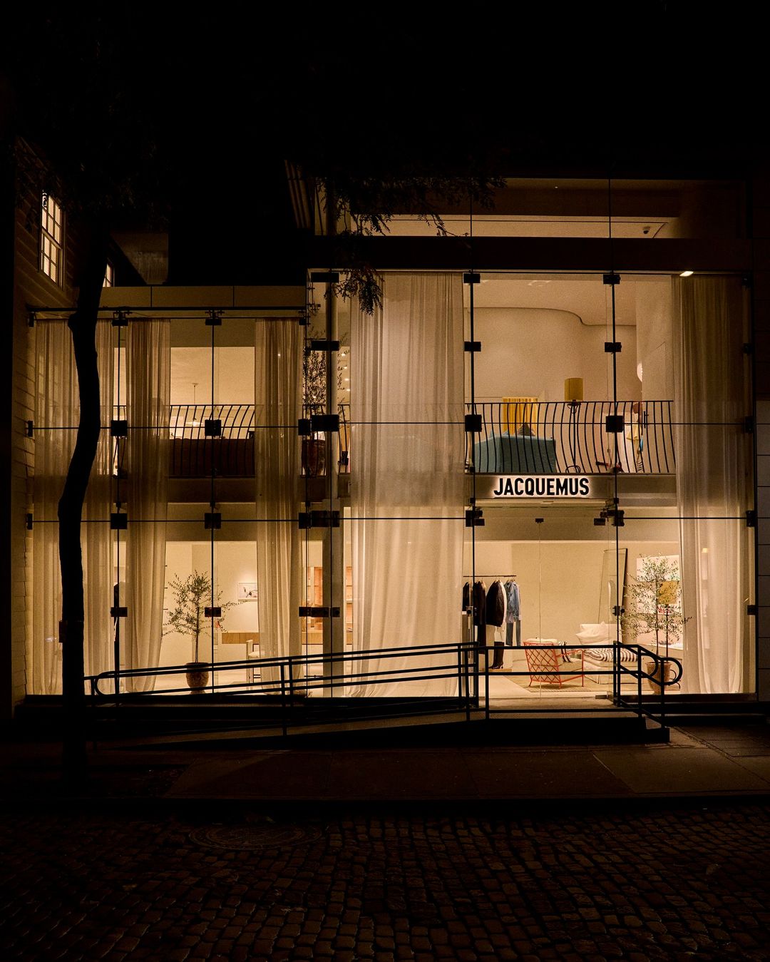 Магазин Jacquemus розташувався на двох поверхах будівлі в федеративному стилі в Сохо. Центральним елементом простору стали масштабні сходи з кованими перилами, об’єднані в єдину композицію зі стендом для найбажаніших сумок бренду. Присутні в декорі й колекційні предмети інтер’єру: крісла, які належали дизайнеру Жану Руайеру, та лавка архітектора Френка Ллойда Райта.