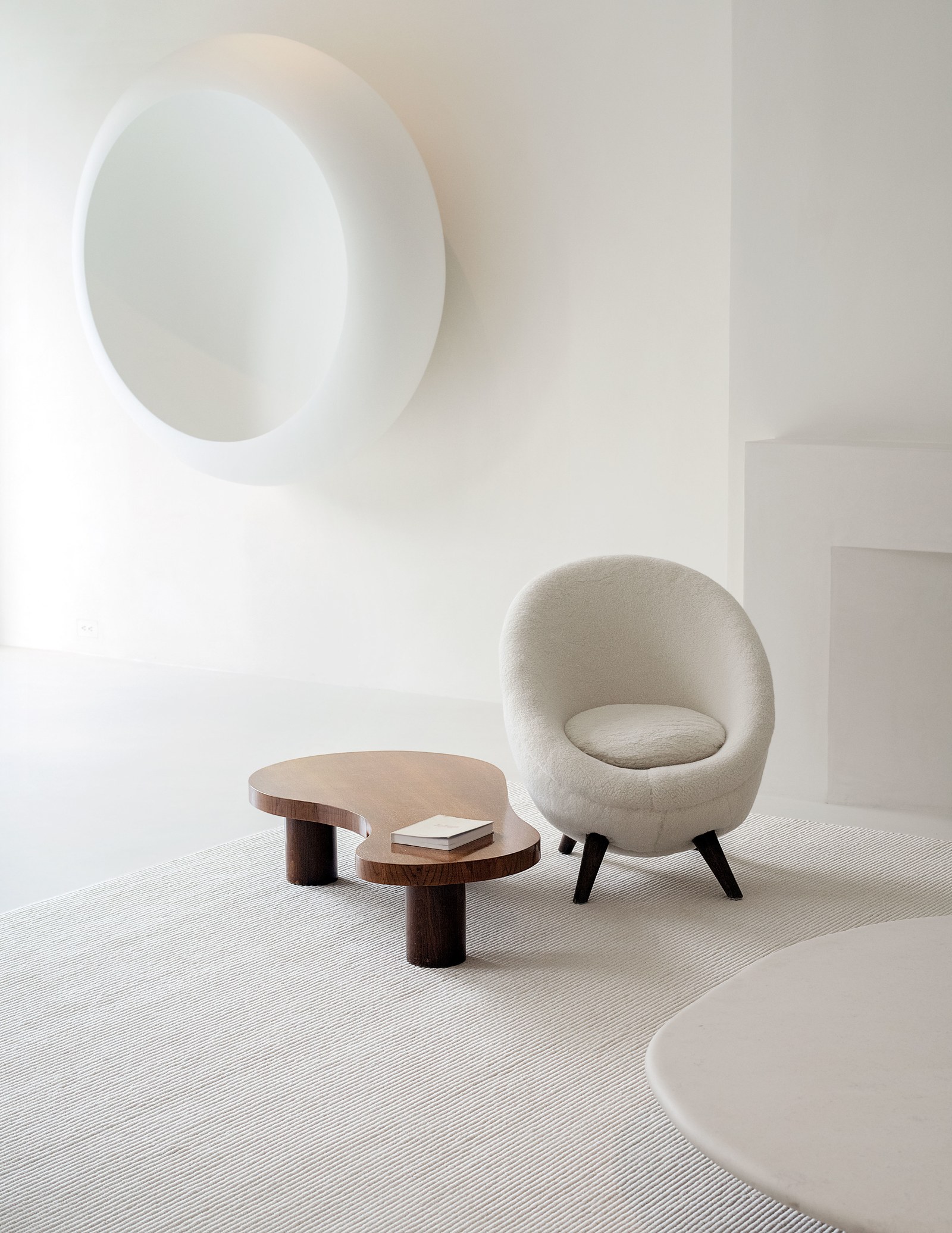 Практически вся мебель в доме дизайнерская, например белоснежный диван Jean Royere Polar, журнальный столик от Акселя Вервордта, столешницы на кухне украшают вазы японского художника-керамиста Сиро Цудзимуры. "Когда я увидел, какую работу выполняет Аксель Вервордт, я подумал: этот человек может спроектировать дом Бэтмена. Я очень хотел поработать с ним".