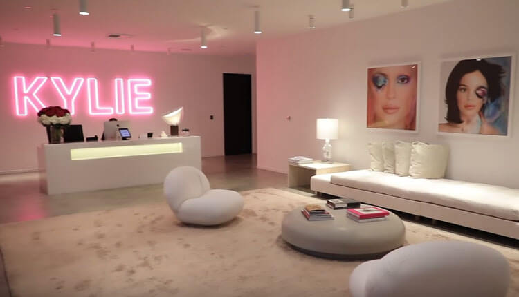 Офис компании Kylie Cosmetics очень просторный, в интерьере преобладают розовые цветовые акценты в виде диванов и кухонных атрибутов, пушистых кресел вместо стандартных офисных стульев, а также огромное количество глянцевых изданий, на обложках которых размещены представители знаменитого семейства.