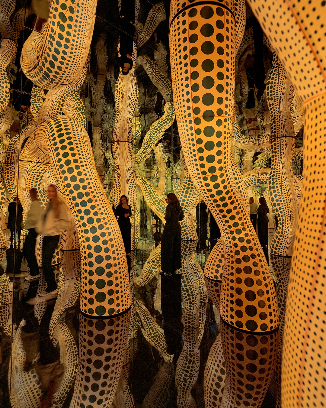 Центральним елементом виставки традиційно стала інсталяція Infinity Mirrored Room — дзеркальна кімната, що створює ефект безкінечного простору. Її втілено у формі дзеркального куба, встановленого під відкритим небом, у саду музею, що дозволяє відчути ще більш сюрреалістичний досвід взаємодії з простором, що віддзеркалює довкілля та самих відвідувачів.