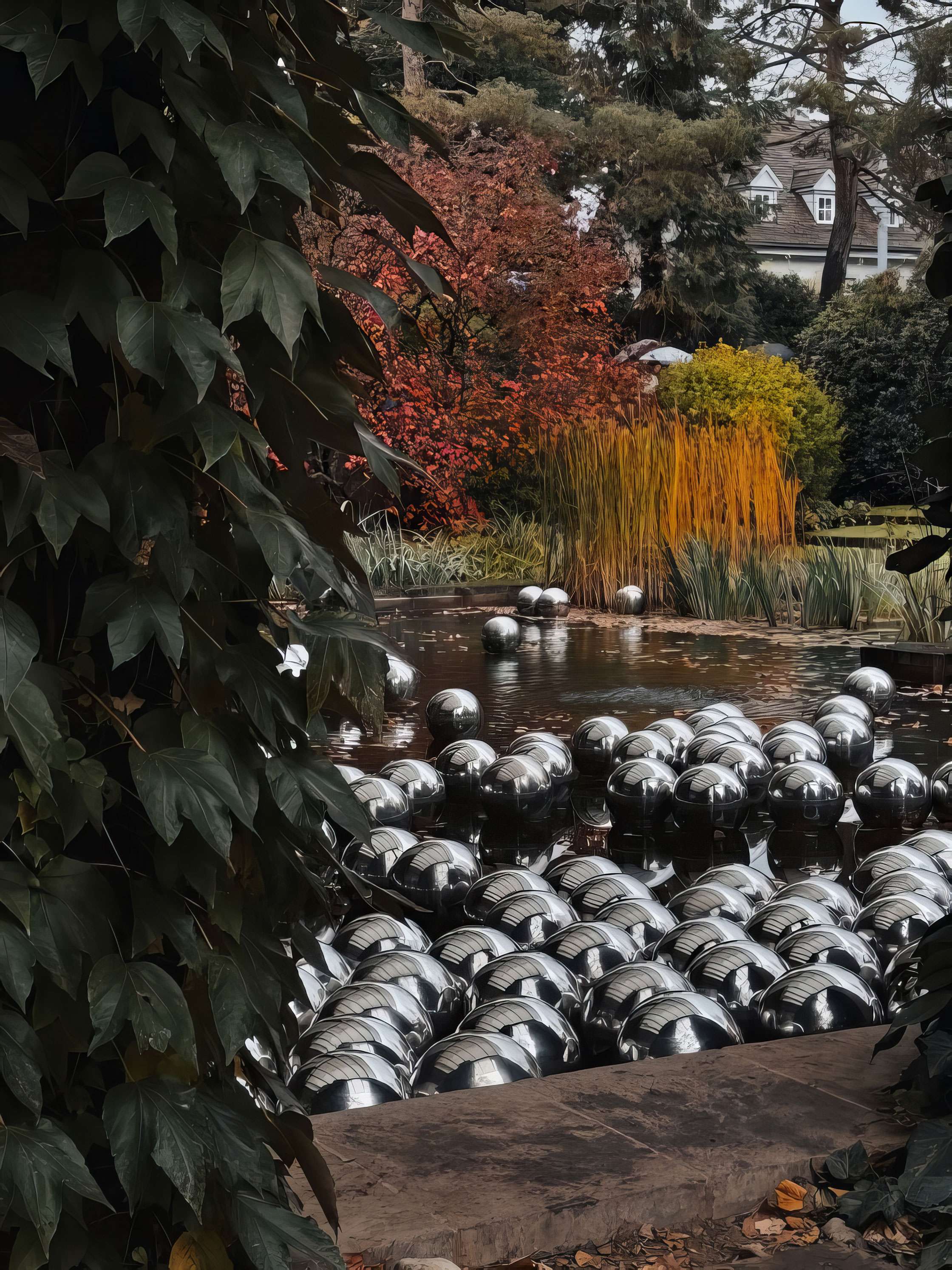 Також на виставці представлена відома інсталяція Narcissus Garden — десятки дзеркальних сфер, що плавають по поверхні води та створюють мінливу гру відбиттів. Вперше представлена у 1966 році, ця робота стала однією з ключових у творчому доробку Кусами та продовжує еволюціонувати в різних просторах світу.