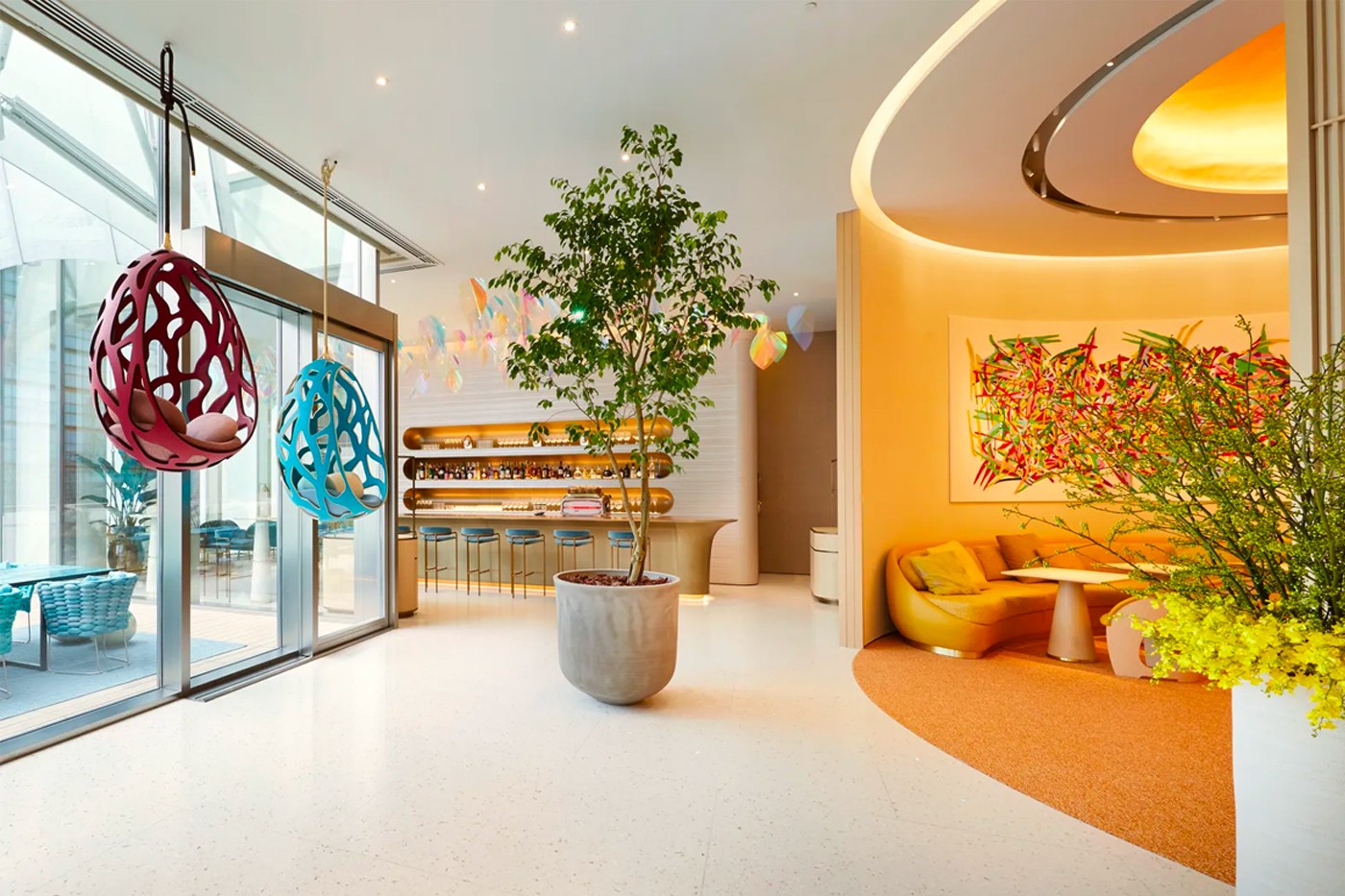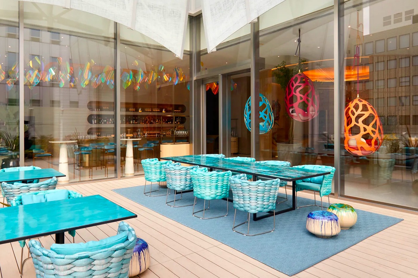 Декор и мебель для заведений разработал Токуджин Йошиоко, а дизайнером интерьеров стал Джун Аоки. По задумке интерьер кафе и ресторана должен напоминать корабль, плывущий по воде.