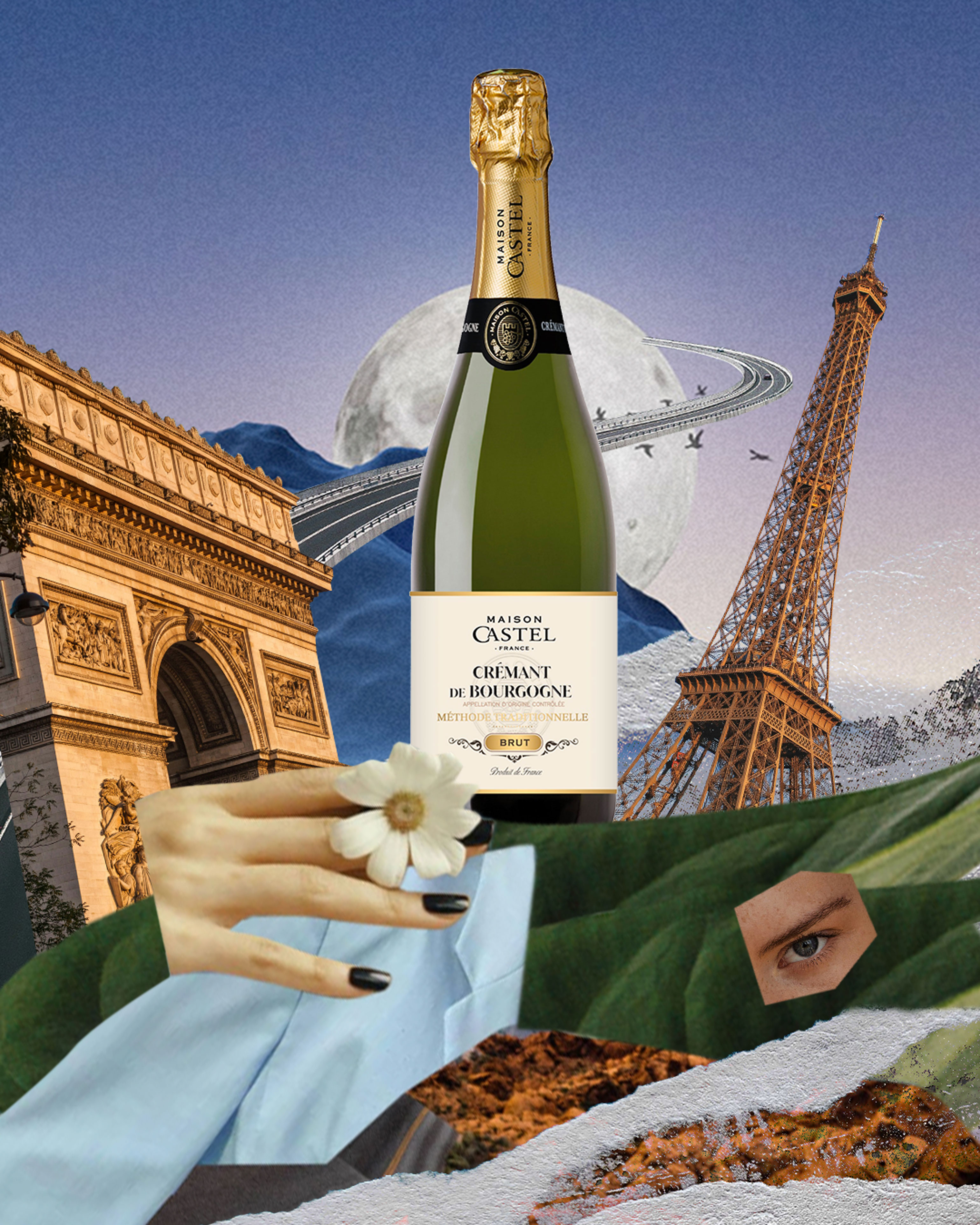 Уявіть, ви на балконі з неймовірним видом, чавунні перила, шум міста десь внизу. Париж не поспішає, і ви теж. Келих з crémant від Maison Castel у руці — день, прожитий красиво з відчуттям глибини та елегантності. Поруч — близька людина, перед вами — місто, яке поступово переходить у вечірній режим. Простий момент спокою, у якому немає нічого зайвого.