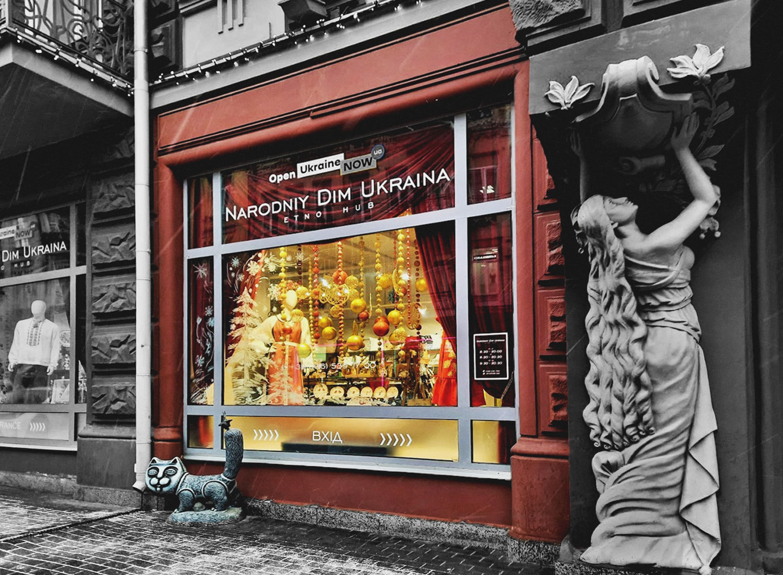 «Народний Дім Україна», розташований на Ярославому Валу біля Золотих Воріт, позиціонують себе як один з перших магазинів суто українських виробів та сувенірів. Тут своє місце знайшли товари, виготовлені в різних містах країнах, а частина з них виготовлена вручну. Крім того, у «Народному Домі Україна» представлені й ексклюзивні роботи українських митців.