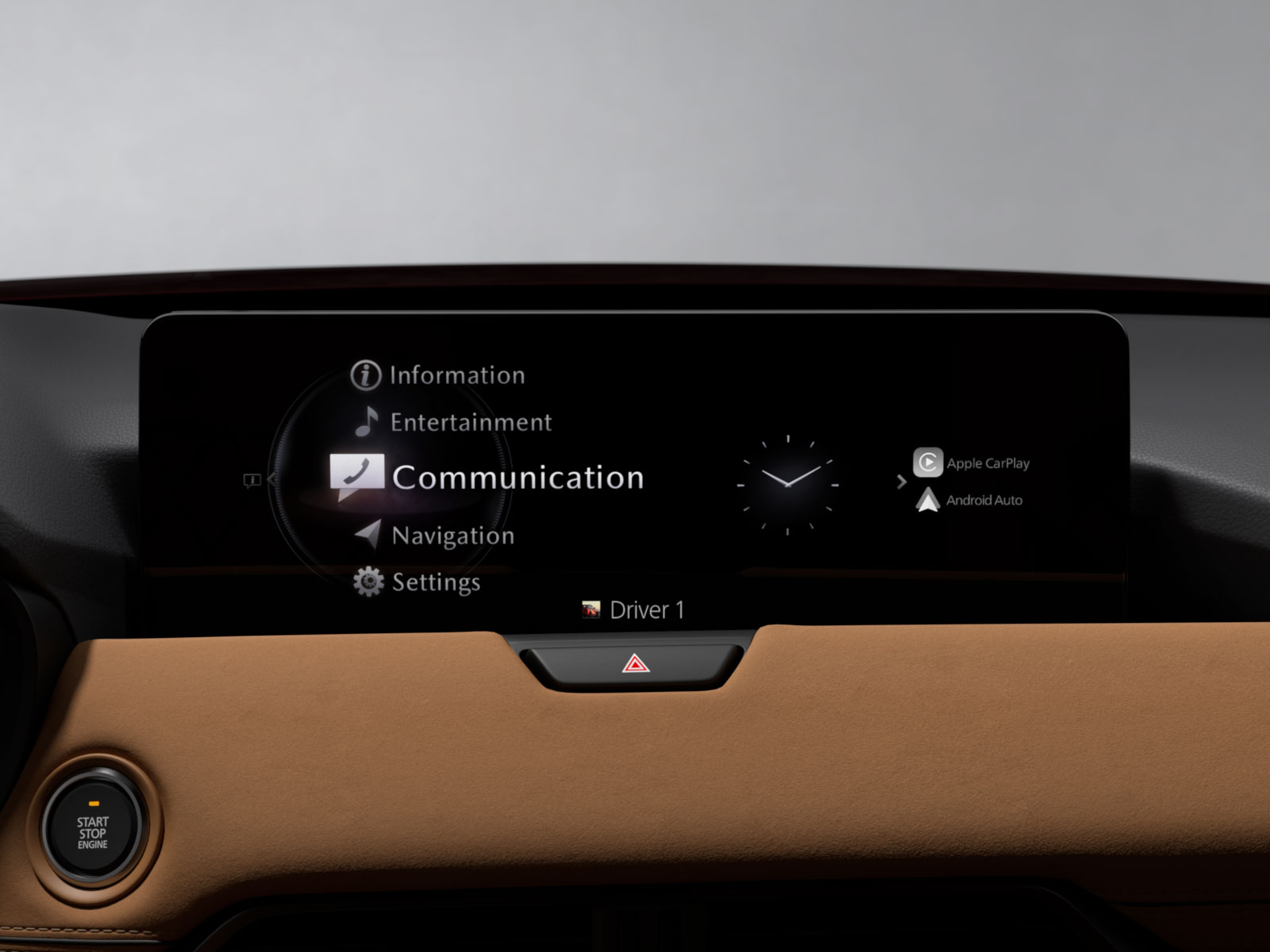 Спортивні стилістичні акорди салону Mazda CX–90 реалізуються сміливою коричневою шкірою Nappa з класичними чорними акцентами – неперевершений дизайн з продуманими акцентами закохають навіть найвибагливіших.