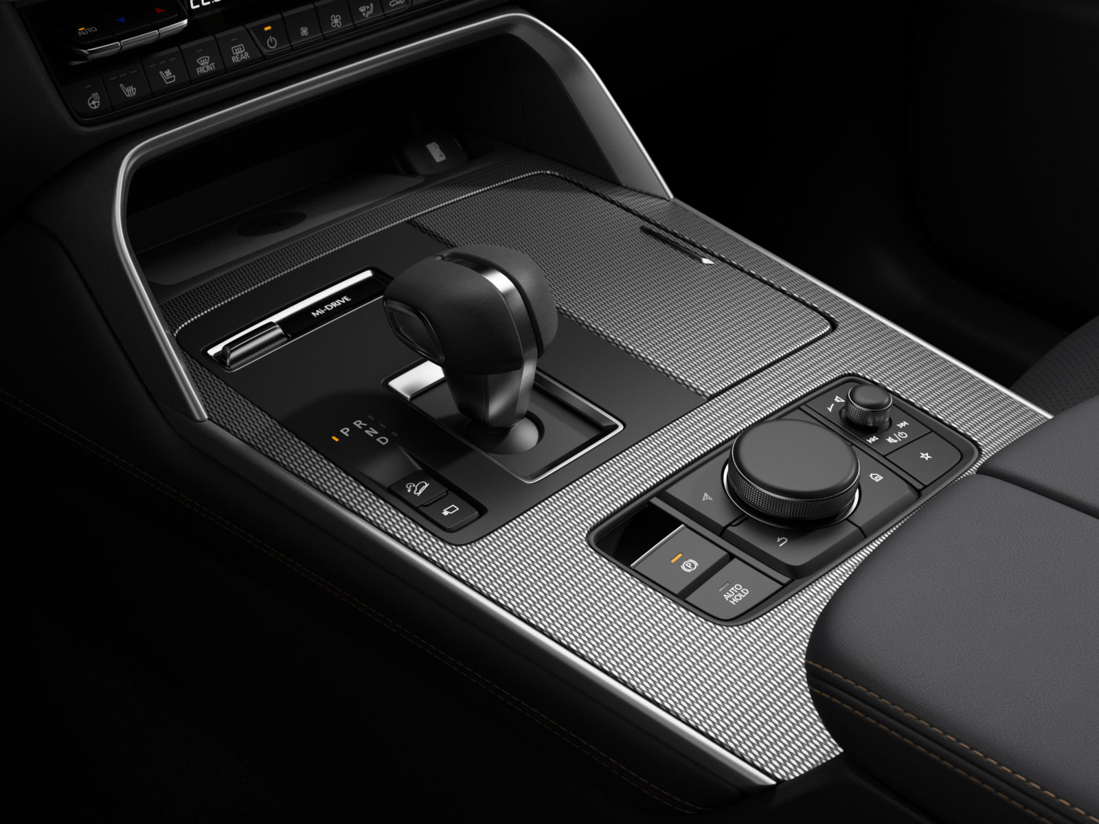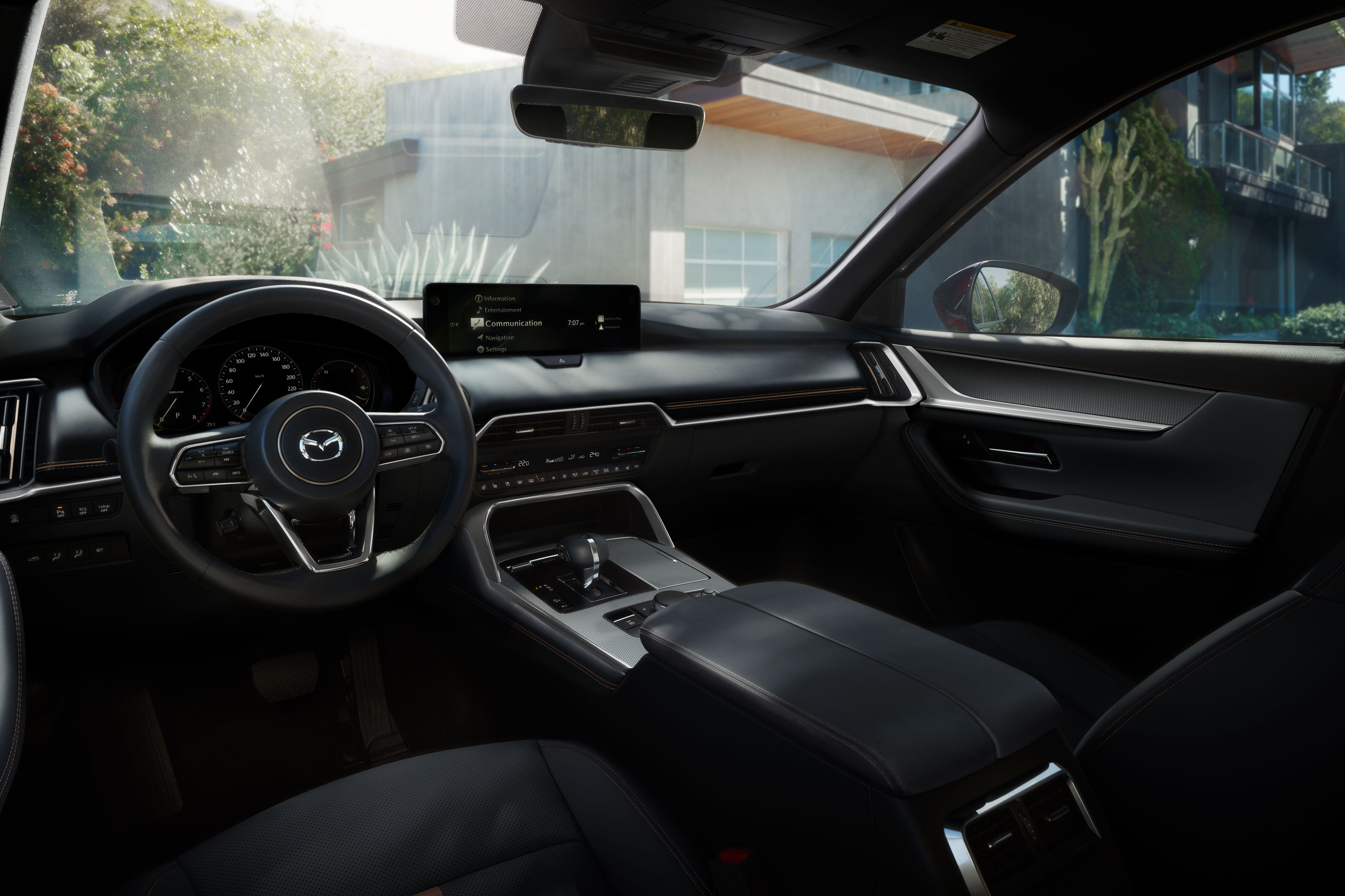 Інтер’єр флагману додає ще більшої харизми та своєрідної зухвалості. Широка приладова панель і бічні жалюзі кліматичної системи, що заходять на обшивку дверей, утворюють багатий глибиною простір. Mazda CX–90 зачаровує не лише своїми довершеними формами, а й продуманим внутрішнім просторим салоном з трьома рядами сидінь.