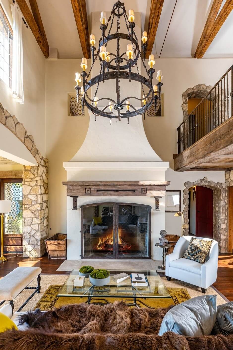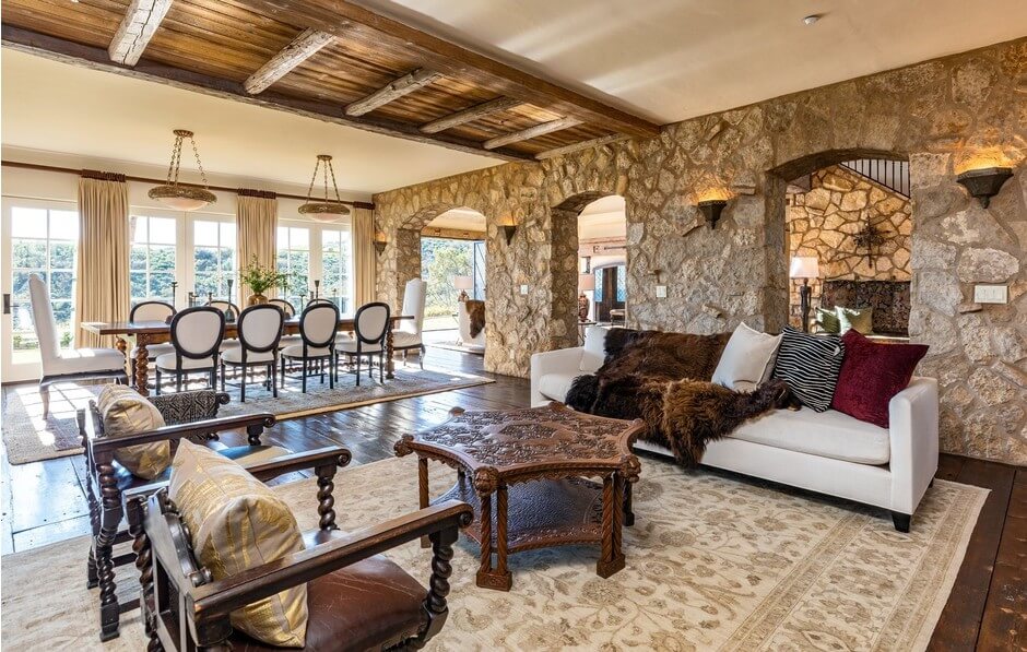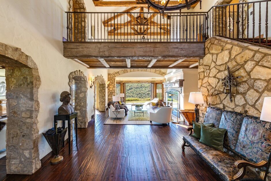 В результате появились деревянные полы ручной работы и камин, привезенные из Европы. А лестницу на второй этаж смастерили из старинных амбарных досок соседней фермы. Каменная кладка, окна из свинцового стекла и металлические люстры придают зданию величественность.