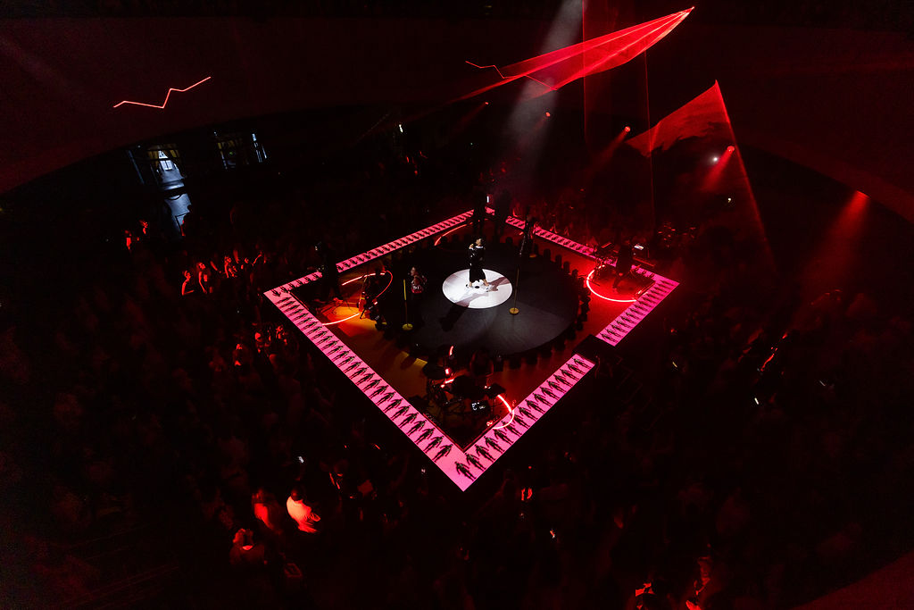 MONATIK дав сольний концерт на унікальній локації, де раніше не виступав жоден артист. Альбом “Вічно танцююча людина” пролунав у стінах Українського Дому — знакового культурного центру Києва, що приймає видатні виставки українських та світових митців. Саме тут відбулося справжнє дійство: артист левітував у повітрі, сцена у формі платівки, вражаюче лазерне шоу, а також перформери й актори, які на різних поверхах влаштовували імерсійне шоу для кожного рівня глядацького простору.