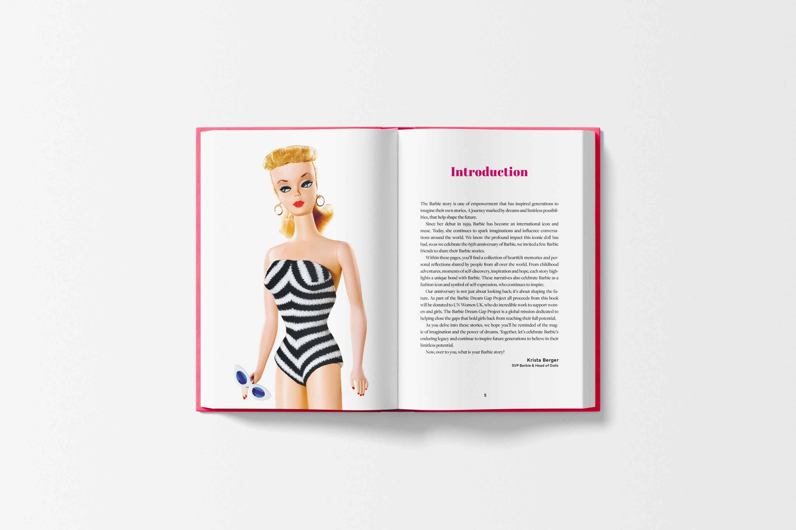 «Ми святкуємо 65-у річницю Барбі, і ця книга – свідчення того, як Барбі протягом десятиліть надихала дівчаток на самореалізацію та досягнення успіху. Ця колекція особистих роздумів підкреслює унікальний зв’язок людей з Барбі, яка стала для багатьох символом самовираження та нагадуванням про те, що ти можеш бути ким забажаєш. Кошти від продажу книги будуть спрямовані на підтримку UN Women UK, що допоможе нам продовжувати реалізовувати нашу місію – надихати дівчат у всьому світі вірити в їхній безмежний потенціал. А зараз ми запрошуємо вас поділитися власною історією про Барбі і приєднатися до нас у святкуванні її спадщини.»