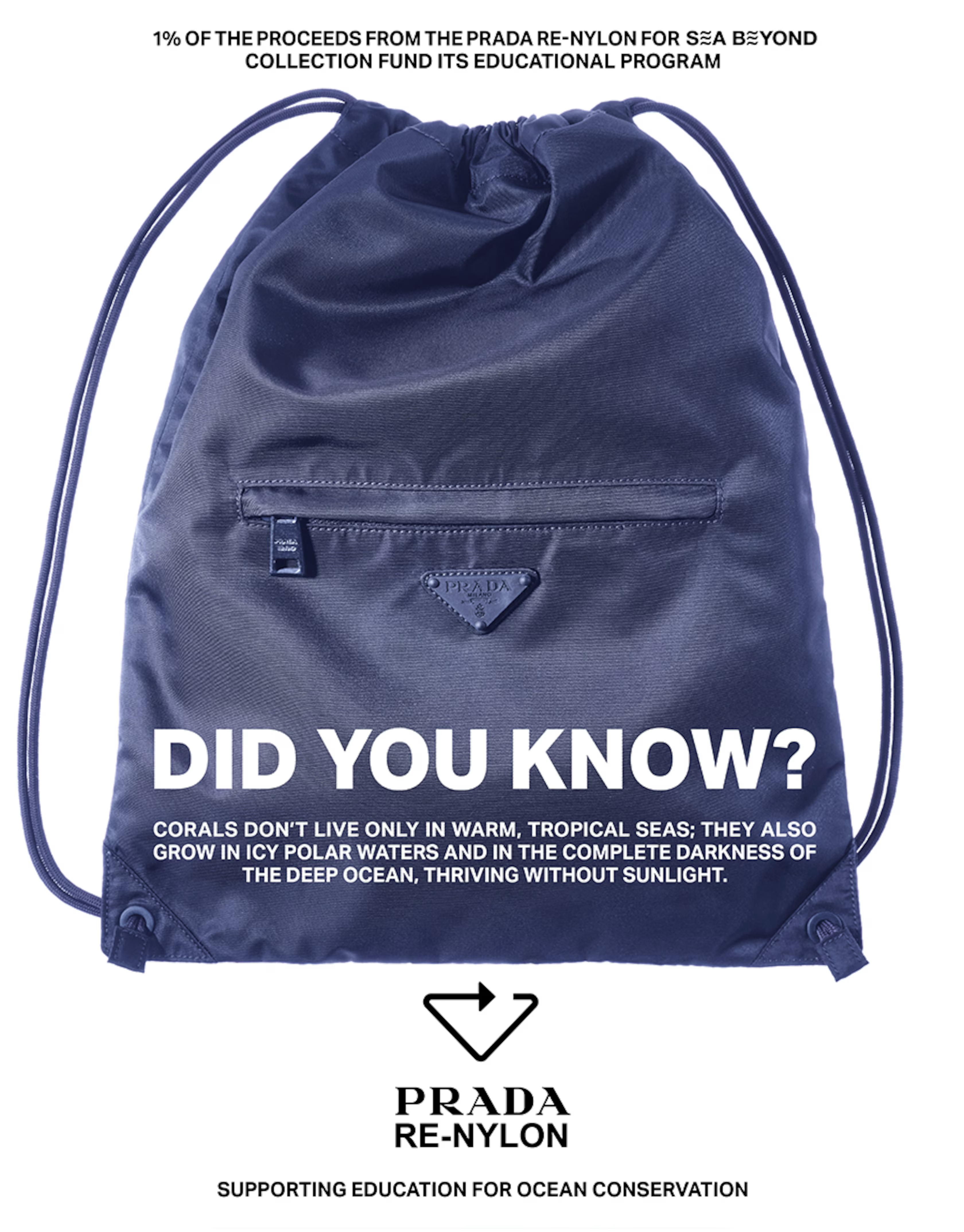 «Кампанія Prada Re-Nylon 2026 присвячена силі усвідомленості та зв’язку між творчістю та відповідальністю. Море стає головним героєм діалогу, що пов’язує діяльність людини з природним середовищем», — зазначають у модному Домі.