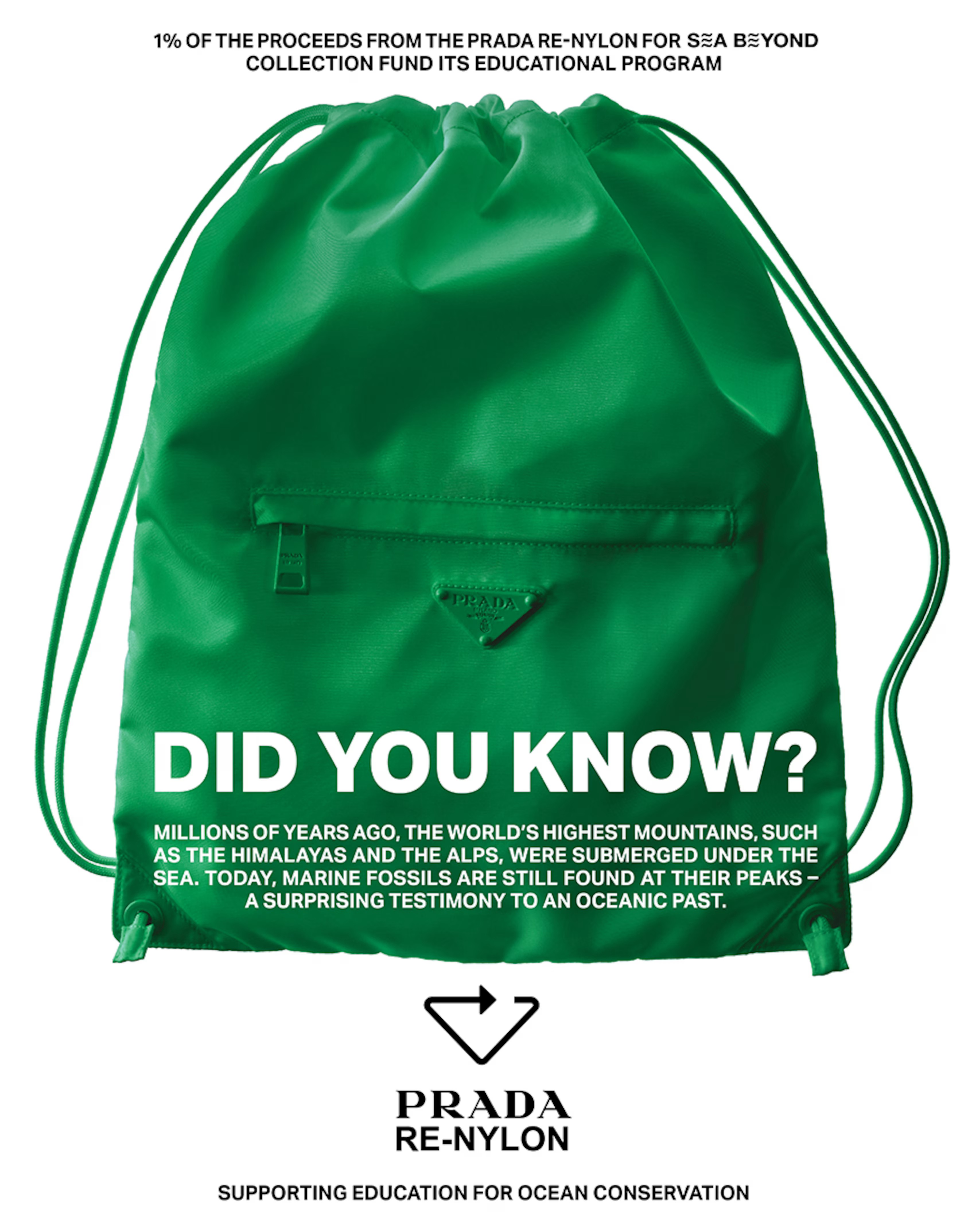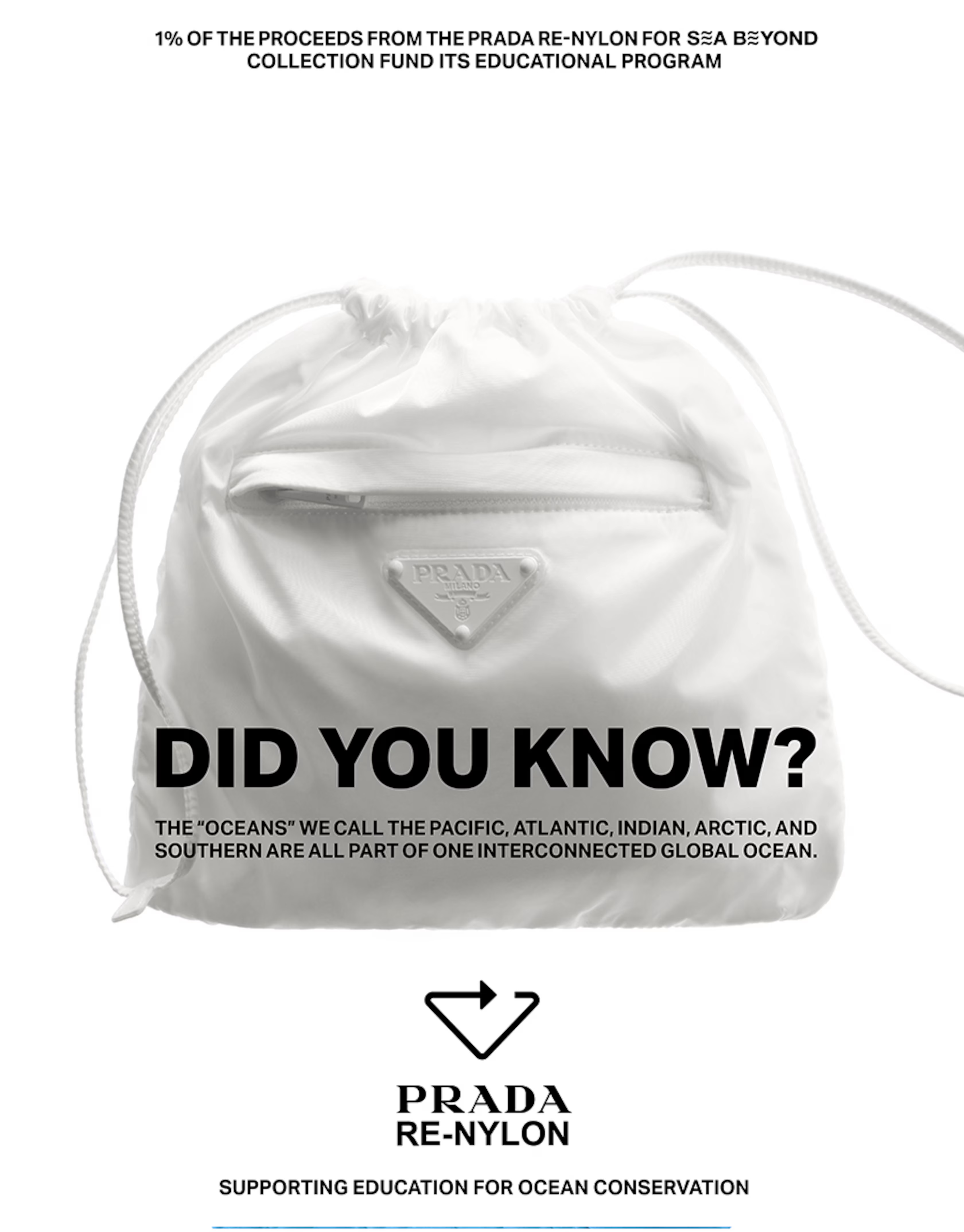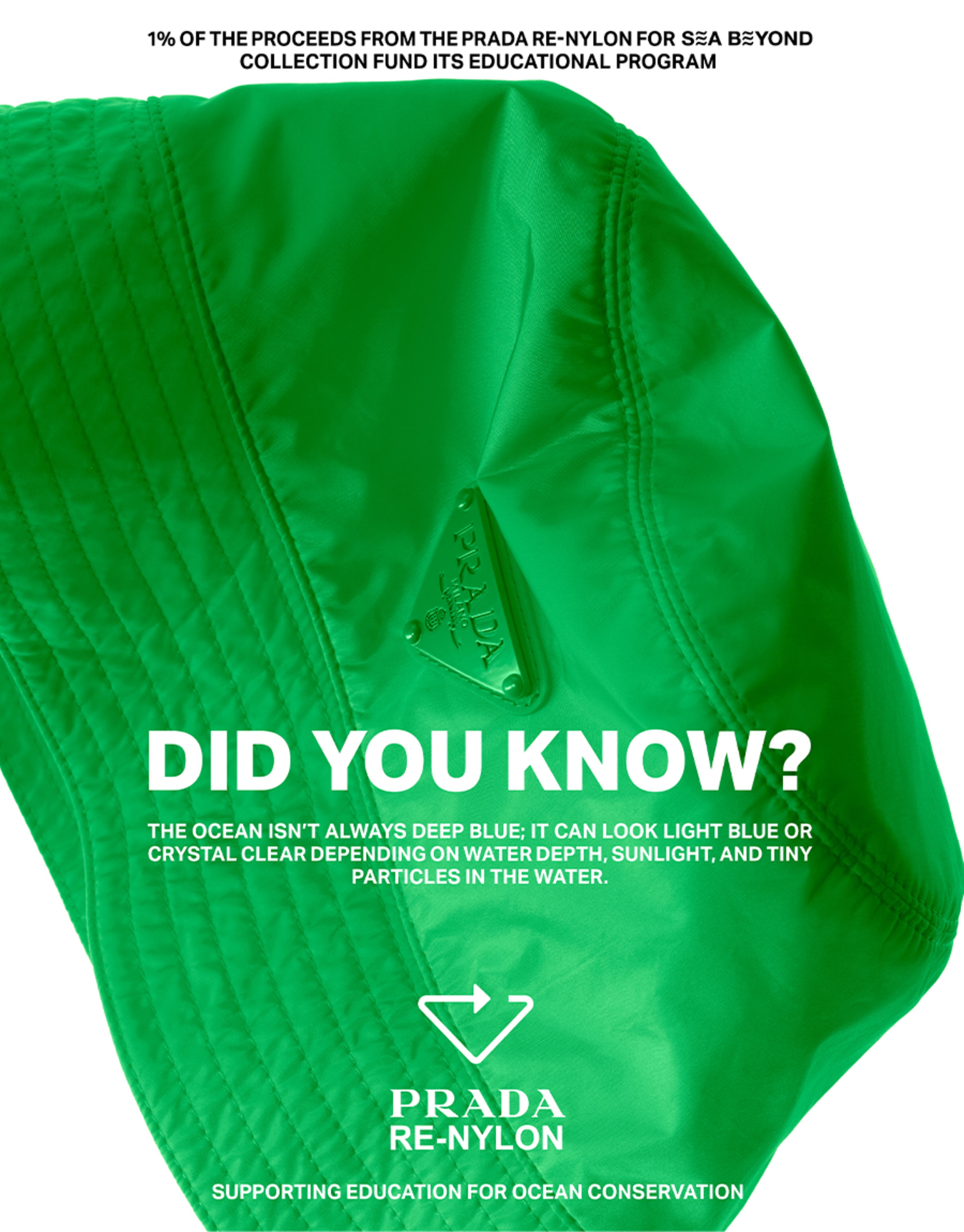 Водночас Prada представляють капсульну колекцію Re-Nylon for SEA BEYOND, що складається з п’яти моделей. Вона переосмислює знакові коди бренду через оновлену кольорову палітру з більш насиченими відтінками.