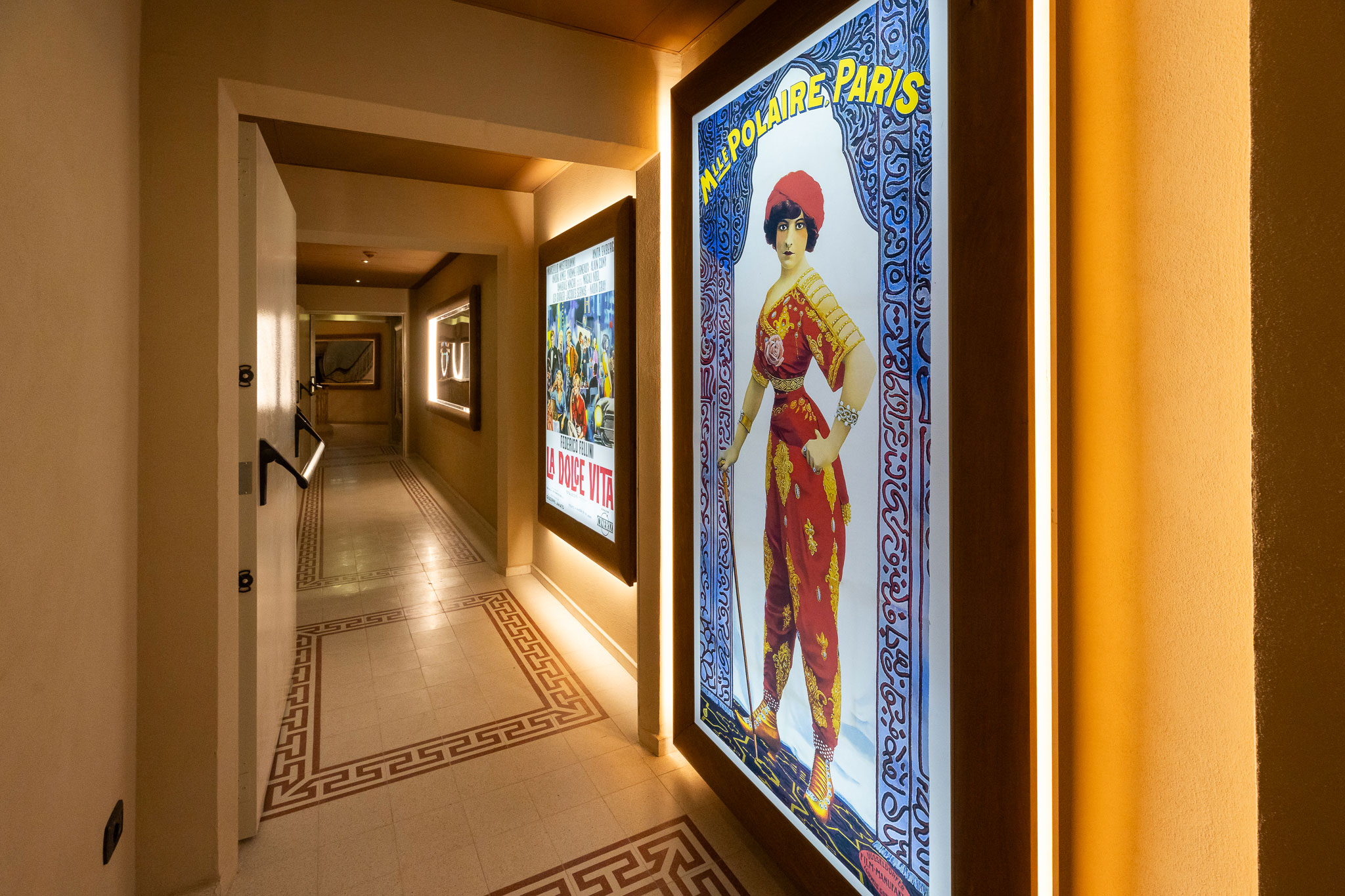 Відродження Cinema Modernissimo містило не тільки повернення колишньої краси інтер’єрів, а й – підземного переходу на вулицю Ріццолі, який тепер перетворено на виставковий простір. Реставрацією керував геній сценографії Джанкарло Базілі. Художник-постановщик надихався старими фотографіями, що зображували оригінальні елементи кінотеатру. Врешті було створено простір, що оспівує магію раннього кіно.