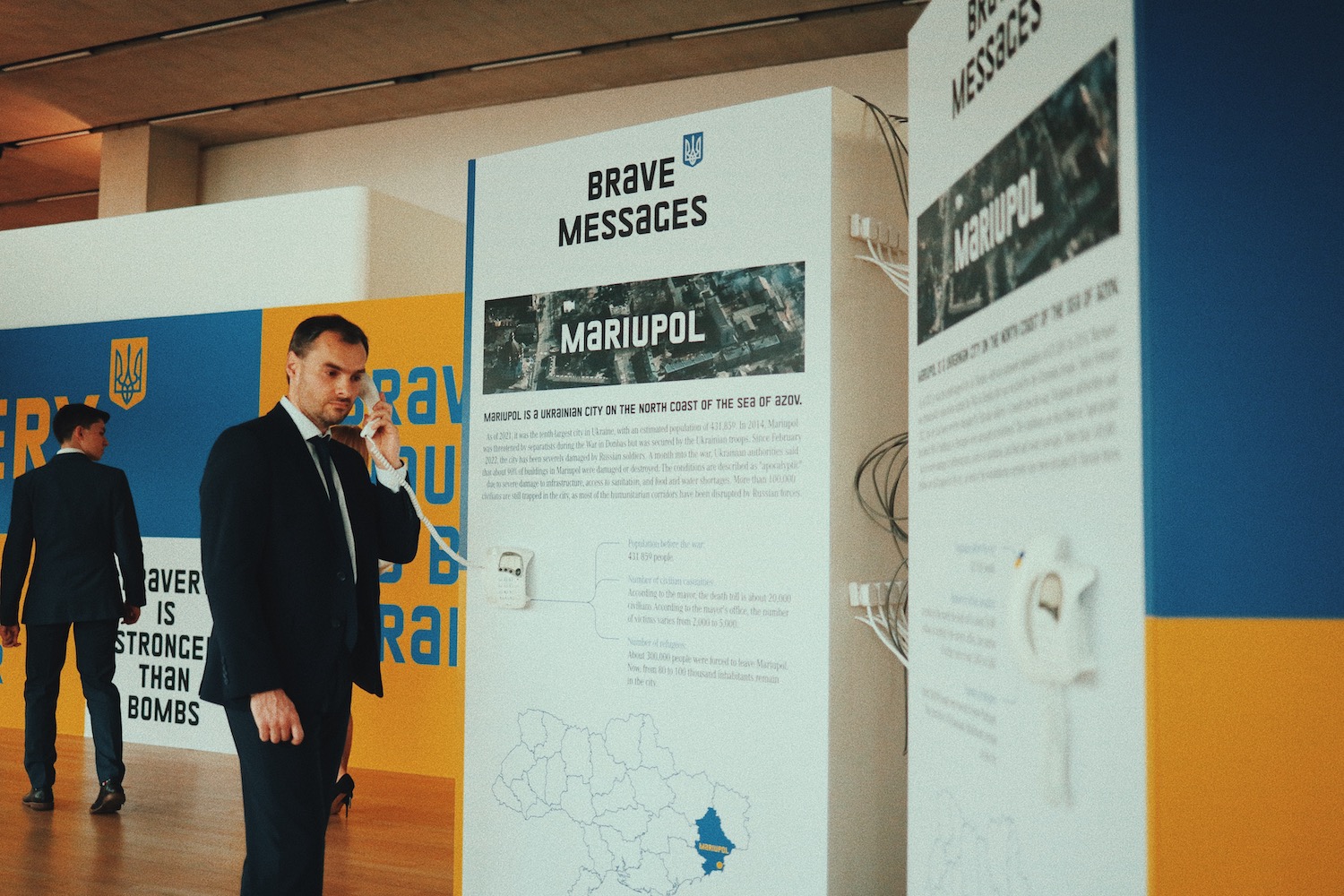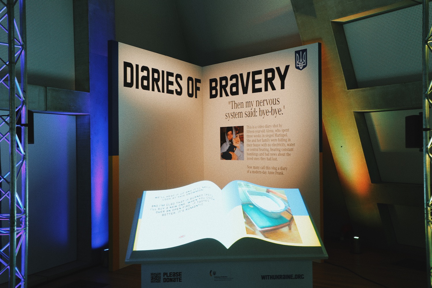 В рамках імерсійної виставки відвідувачі могли послухати щоденник дівчини з Маріуполя, пройтись лабіринтом справжнього бомбосховища, зазирнути в очі сміливості у проєкті Reporters.Media, а також послухати розмови близьких, що говорять про переживання війни у Харкові, Ізюмі, Маріуполі та інших містах України.