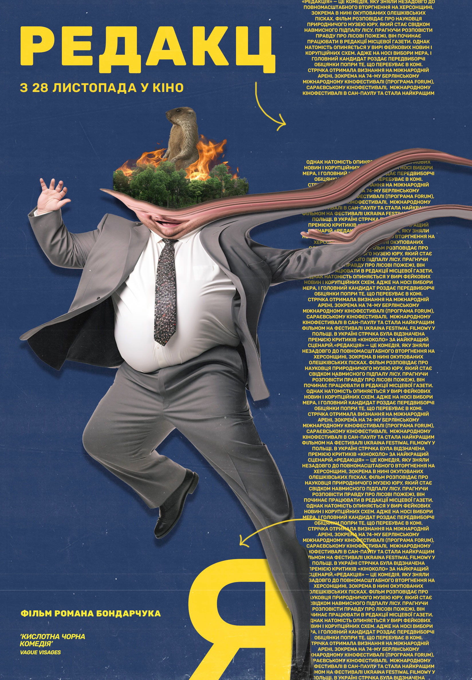 На початку цього року на Берлінському міжнародному кінофестивалі відбулась світова премʼєра українського фільму «Редакція», режисером якого виступив Роман Бондарчук. Його нова стрічка розповідає про молодого вченого Юру. Той намагається розкрити правду про підпалювачів лісів на Херсонщині, і через серію випадків починає працювати в місцевій газеті. Події відбуваються напередодні виборів, тож глядачі стають свідками всього абсурду й корумпованості локальної передвиборчої кампанії.