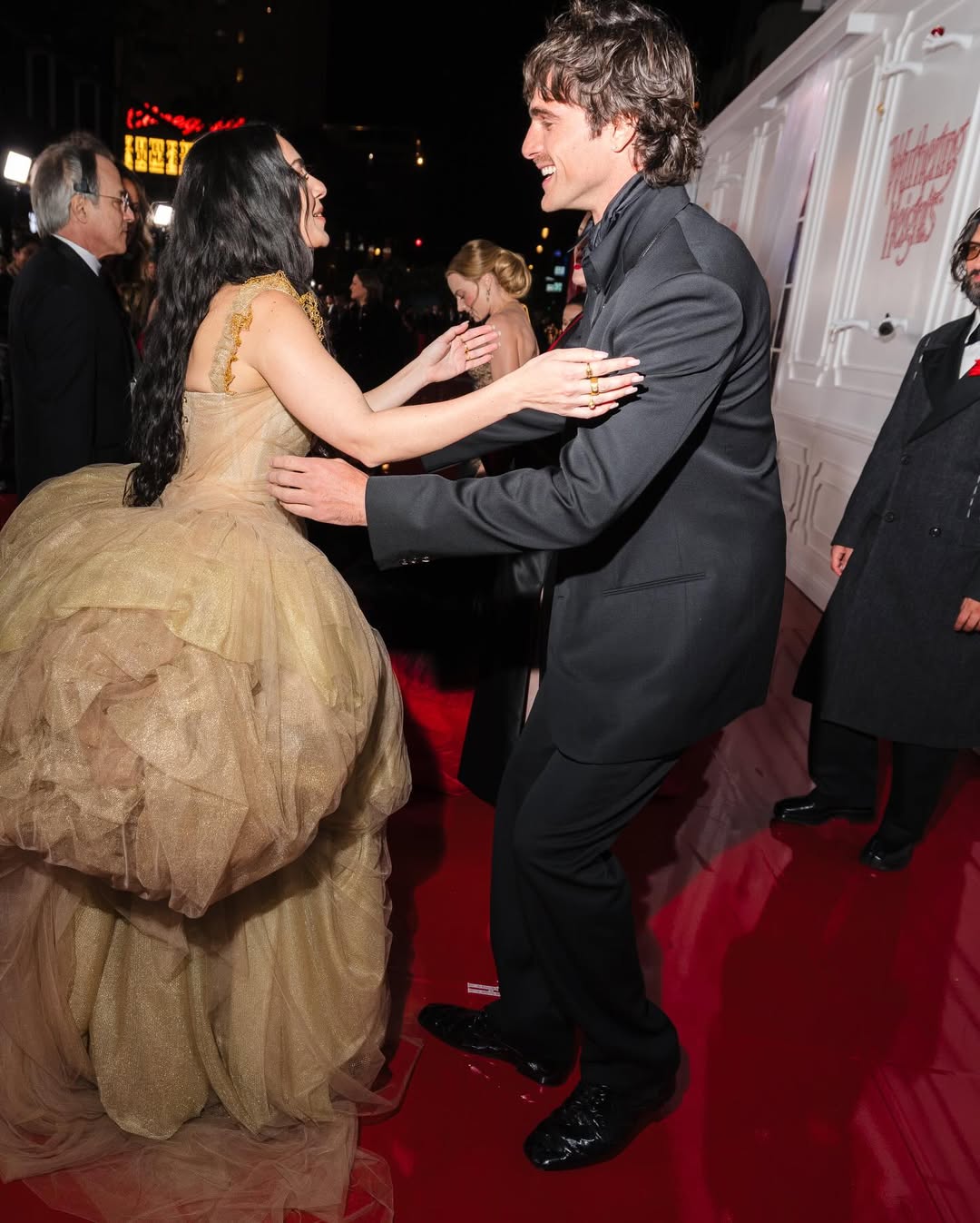 На прем'єрі також були поміченні співачка Charli XCX в образі від Vivienne Westwood, Кара Делевінь — у сукні бренду Wiederhoeft, Елісон Олівер — у Dior. Прем’єру також відвідала режисерка фільму Емеральд Феннелл.