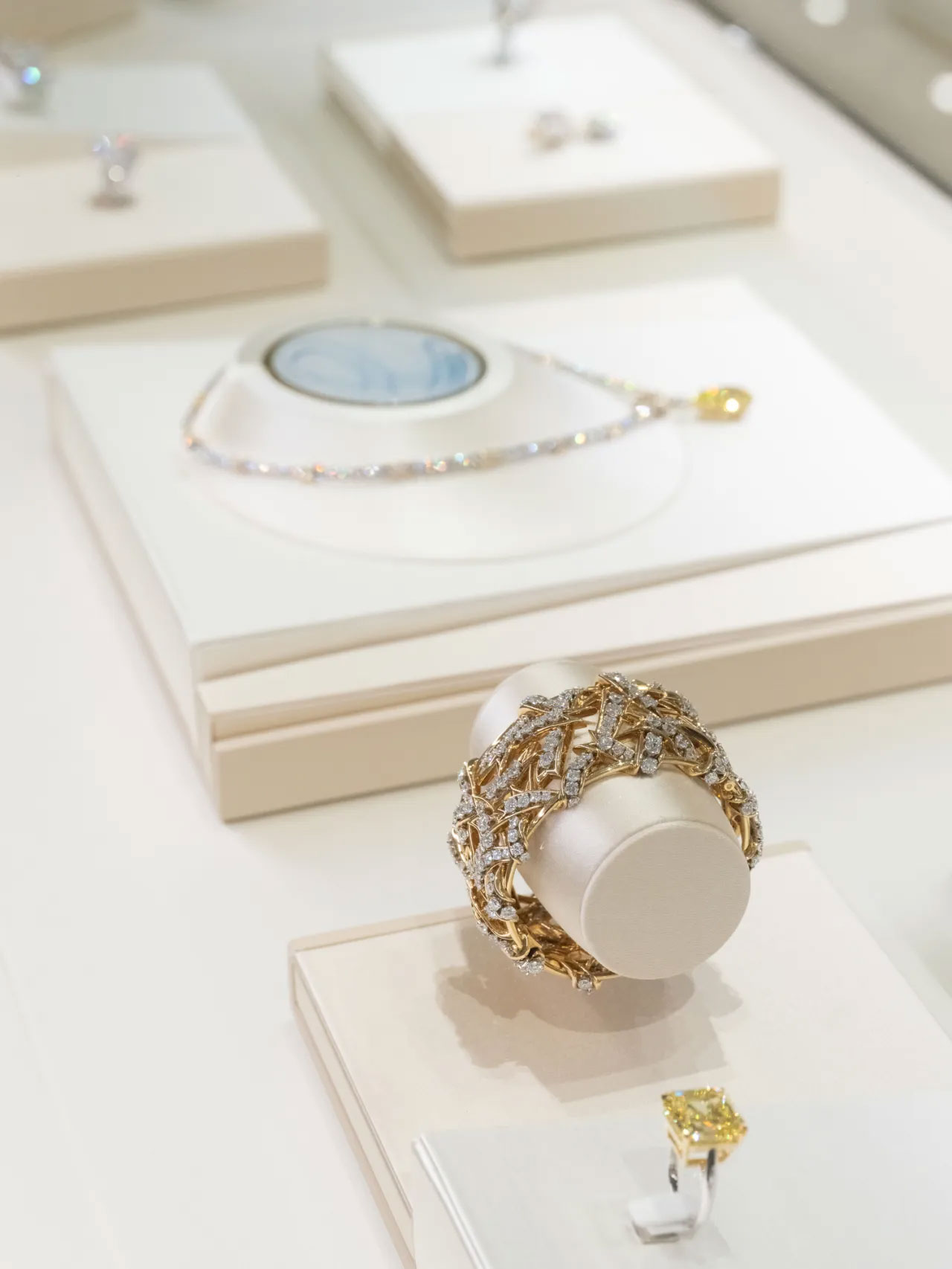 У районі Ґіндза, Токіо, відкрився найбільший у Азії бутик Tiffany & Co. На його фасаді — об’ємна скляна конструкція у фірмовому бірюзовому кольорі бренду, натхненна архівними вітражами Tiffany із зображенням гліциній. Бутик розташувався на шести поверхах та загалом займає 2 500 метрів квадратних площі. Що всередині нього, розповідає L’Officiel Online.