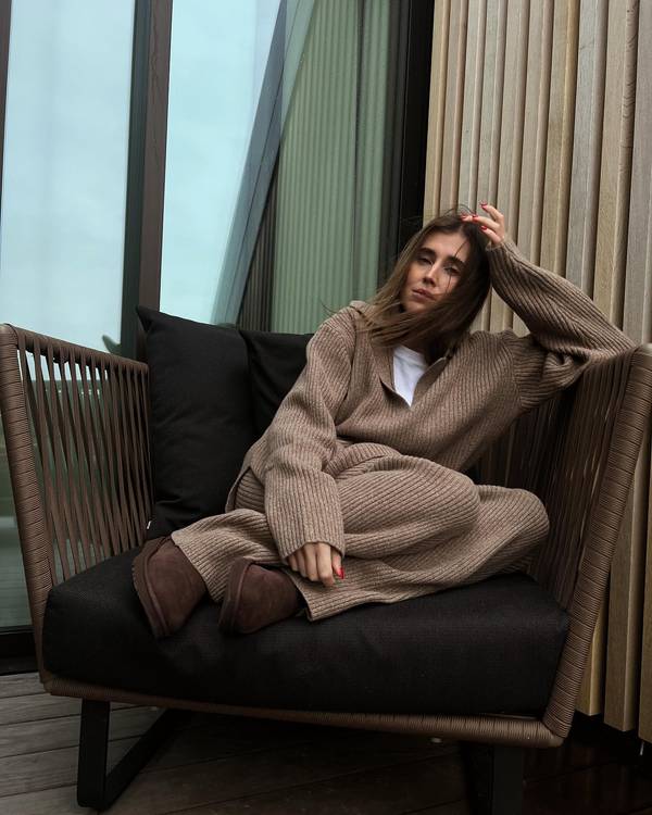 Абсолютний затишок та комфорт – нерозривні асоціації, які викликають образи з поєднанням в’язаного трикотажу та коротких чоботів. Поєднуйте UGG з кашеміровими светрами чи костюмами базових кольорів. Чоботи бренда – ідеальний варіант для зимової палітри бежевих і білих відтінків. Доповнюйте образ об’ємною курткою, масивним шарфом і шапкою біні.