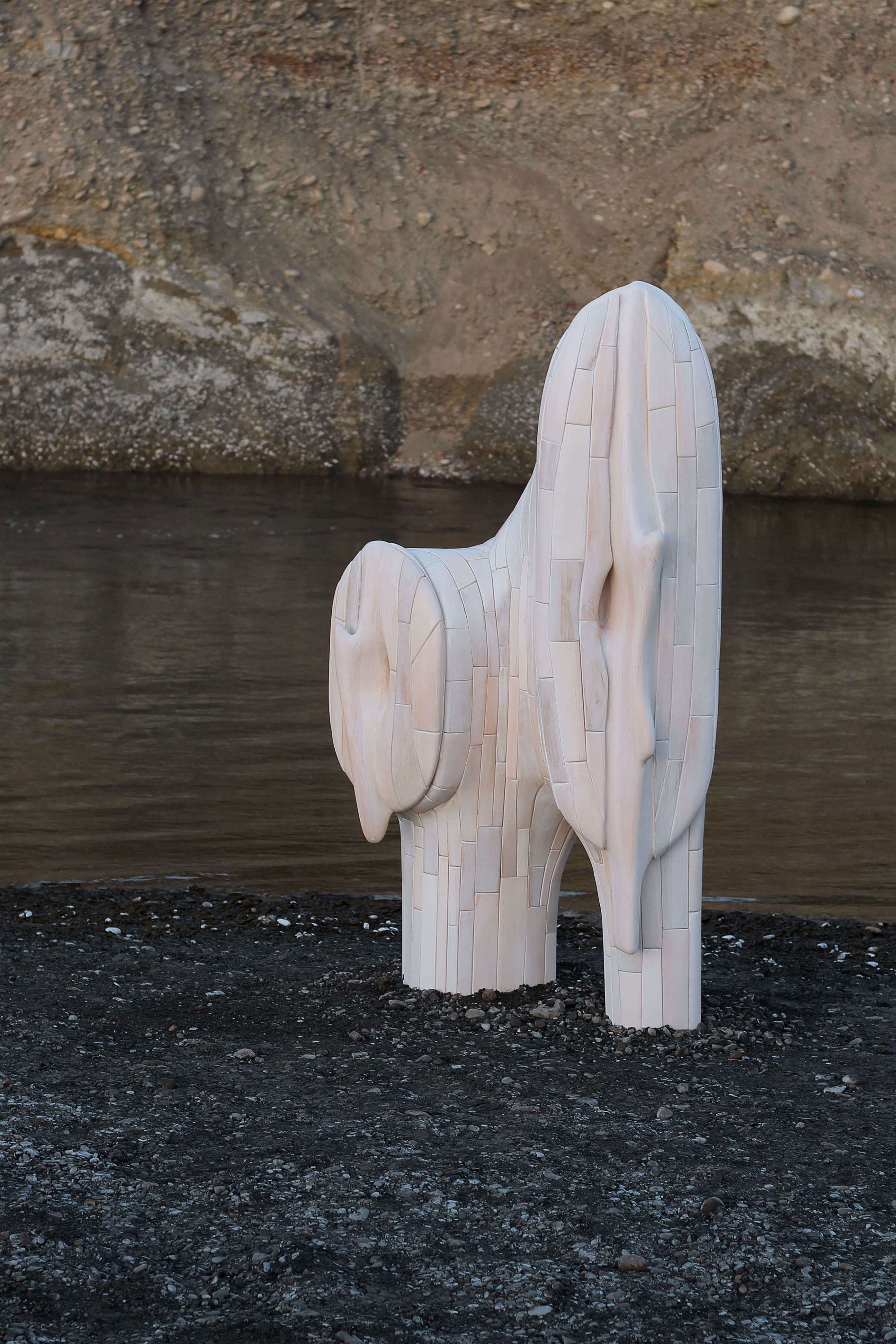 На виставці також буде представлена скульптура «Сонцегрив» із колекції LAND OF LIGHT про стійкість і внутрішню силу в непрості часи. Вона виготовлена з екологічного матеріалу ZTISTA, розробленого самою Вікторією Якушею, що комбінує целюлозу, глину, льон, деревну стружку та біополімер.