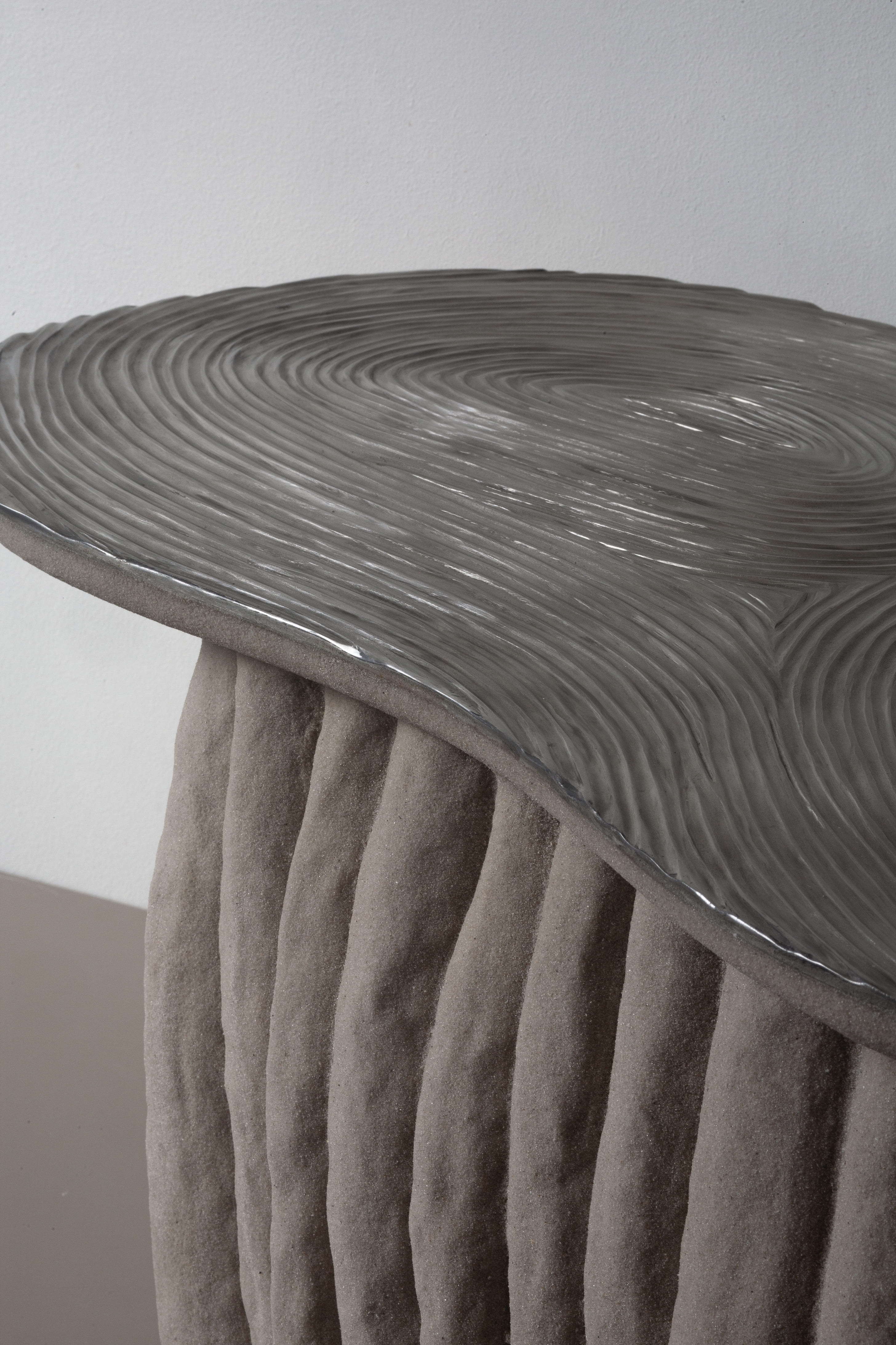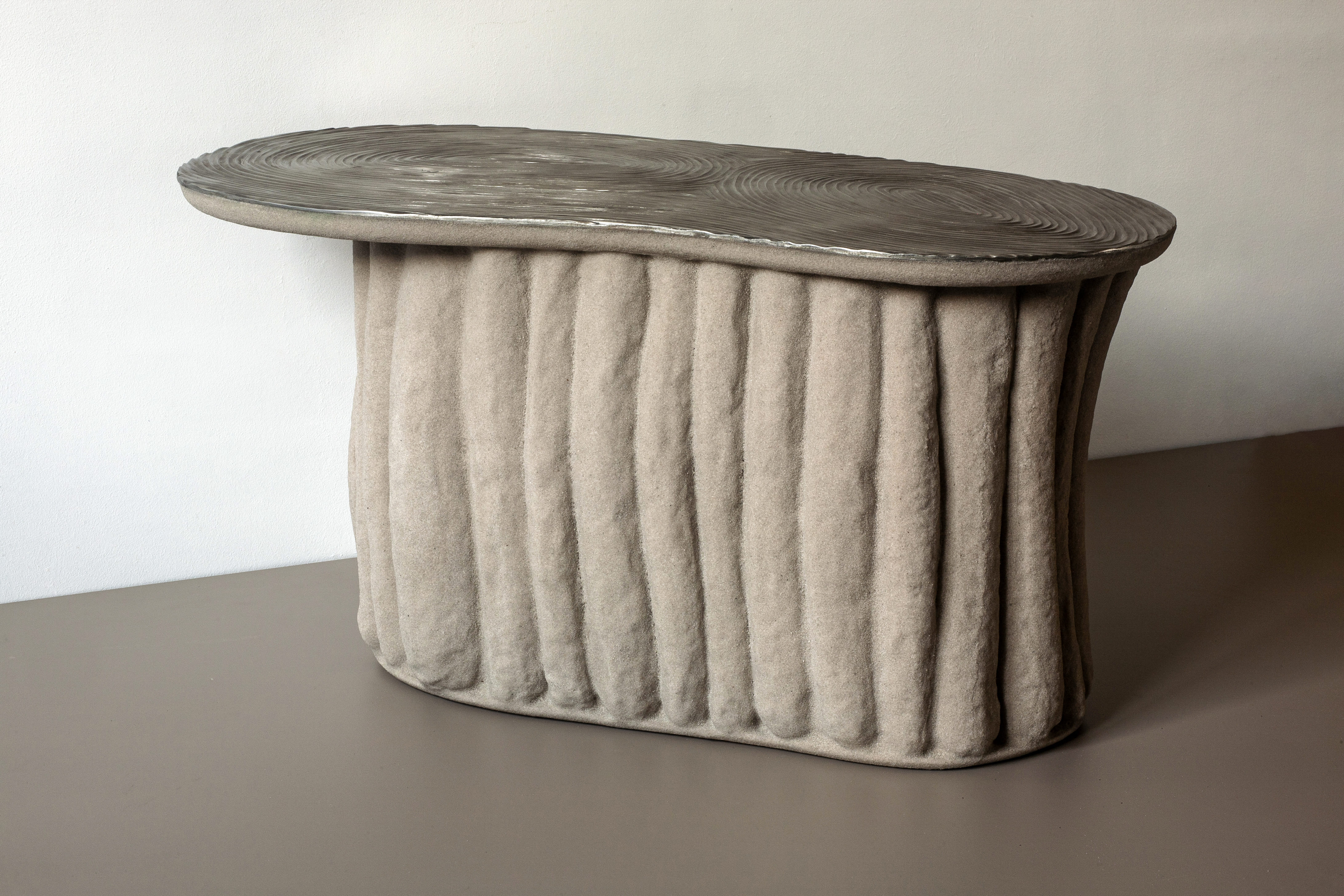 Дует Юлії та Євгена Мельниченків пронизує свої роботи темами природності, сталості й позачасовості. Дизайнери експериментують із біоматеріалами, поєднуючи традиційні ремісничі техніки із сучасним дизайном. На Salon Art + Design вони представлять журнальний столик з екологічної колекції KHMYZ, створеної з авторського біоматеріалу «Землецвіт». Річ із матовою стільницею з нержавійної сталі має рельєф у вигляді річних кілець дерева.