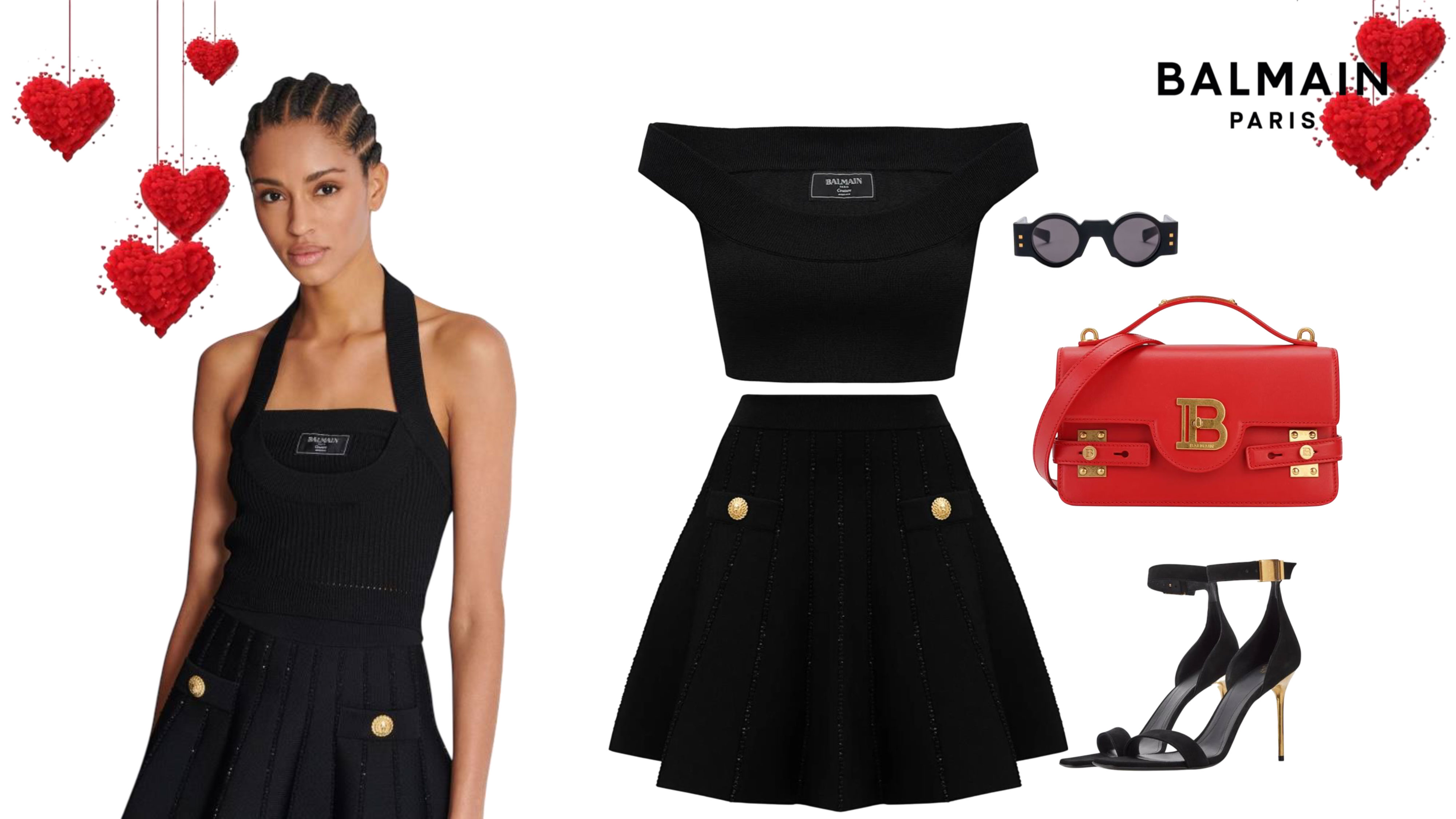 Для лаконічного, елегантного, але водночас зручного образу зверніть увагу на жакет з акцентними ґудзиками, джинси прямого крою, туфлі-човники та позачасову сумку-клатч від Dolce&Gabbana. Якщо ж ваше святкування проходитиме в колі подруг за улюбленими коктейлями, обирайте трикотажний топ та спідницю від Balmain. Яскравою деталлю такого образу стане червона сумка, яка, до того ж, легко поєднається з іншими речами у вашому гардеробі. Завершіть туфлями на підборах та сонцезахисними окулярами за потреби, аби отримати максимум задоволення від свого зовнішнього вигляду в цей день!