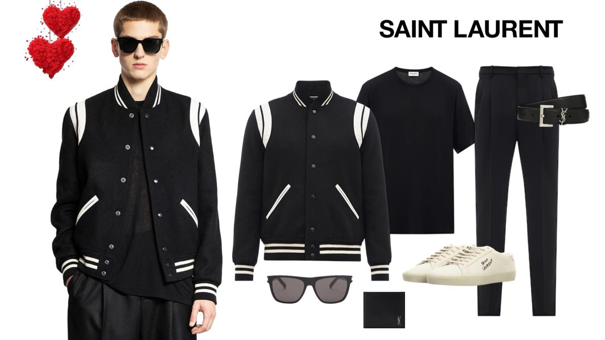 В Saint Laurent зверніть увагу на бомбер з контрастними смугами, класичні брюки та базову футболку в чорному кольорі. Чудовими варіантами подарунків до Дня закоханих також можуть стати сонцезахисні окуляри, шкіряний ремінь, базові білі кеди або ж гаманець чи картхолдер.