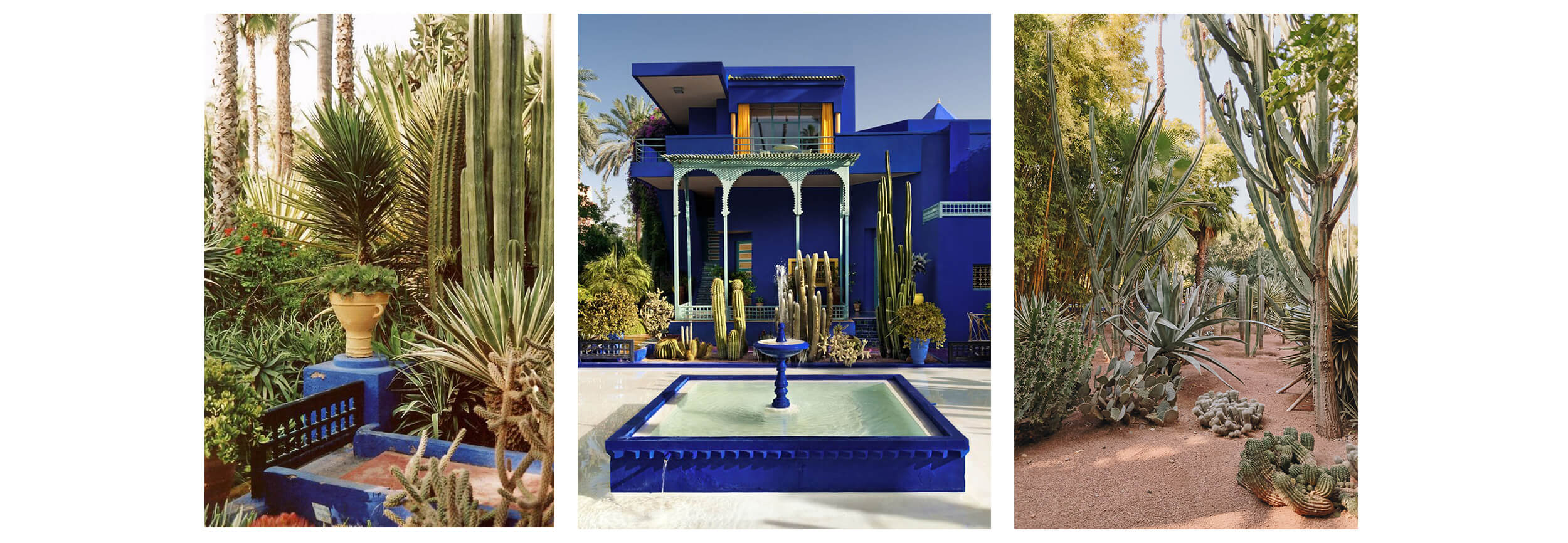 “Марракеш научил меня цвету, — сказал Ив Сен-Лоран в 1983 году. — В Марокко я обнаружил, что особенно люблю цвет и его проявления в вещах, которые можно найти только там — в мозаиках зилидж и резьбе по дереву, на кафтанах и накидках джеллаба. Дерзостью в своей работе я обязан этой стране с ее сильной гармоничностью, смелыми сочетаниями, страстью к творчеству. Марокканская культура мне очень близка, но просто использовать ее элементы недостаточно — мне нужно было ее трансформировать, адаптировать”.