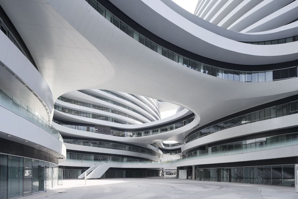 Galaxy Soho в китайському Пекіні є розважальним і офісним комплексом та однією з найвідоміших будівель Захи Гадід. Споруда уникає прямих кутів, містить чотири купольні частини, які з’єднані мостами. Galaxy Soho натхненний старовинними внутрішніми китайськими дворами та пропонує відкритий простір, який «продовжується».