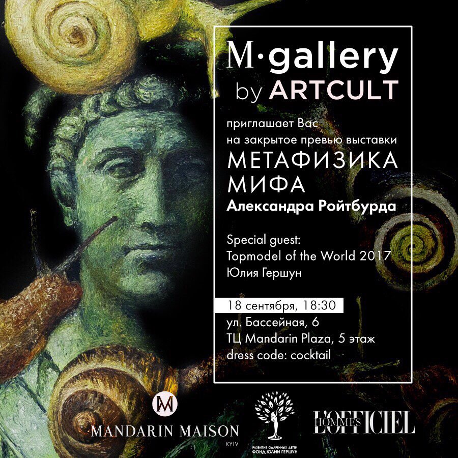 C 19 сентября по 21 октября в галерее M.gallery в Киеве пройдет выставка «Метафизика мифа», где будут представлены работы одесского художника Александра Ройтбурда.