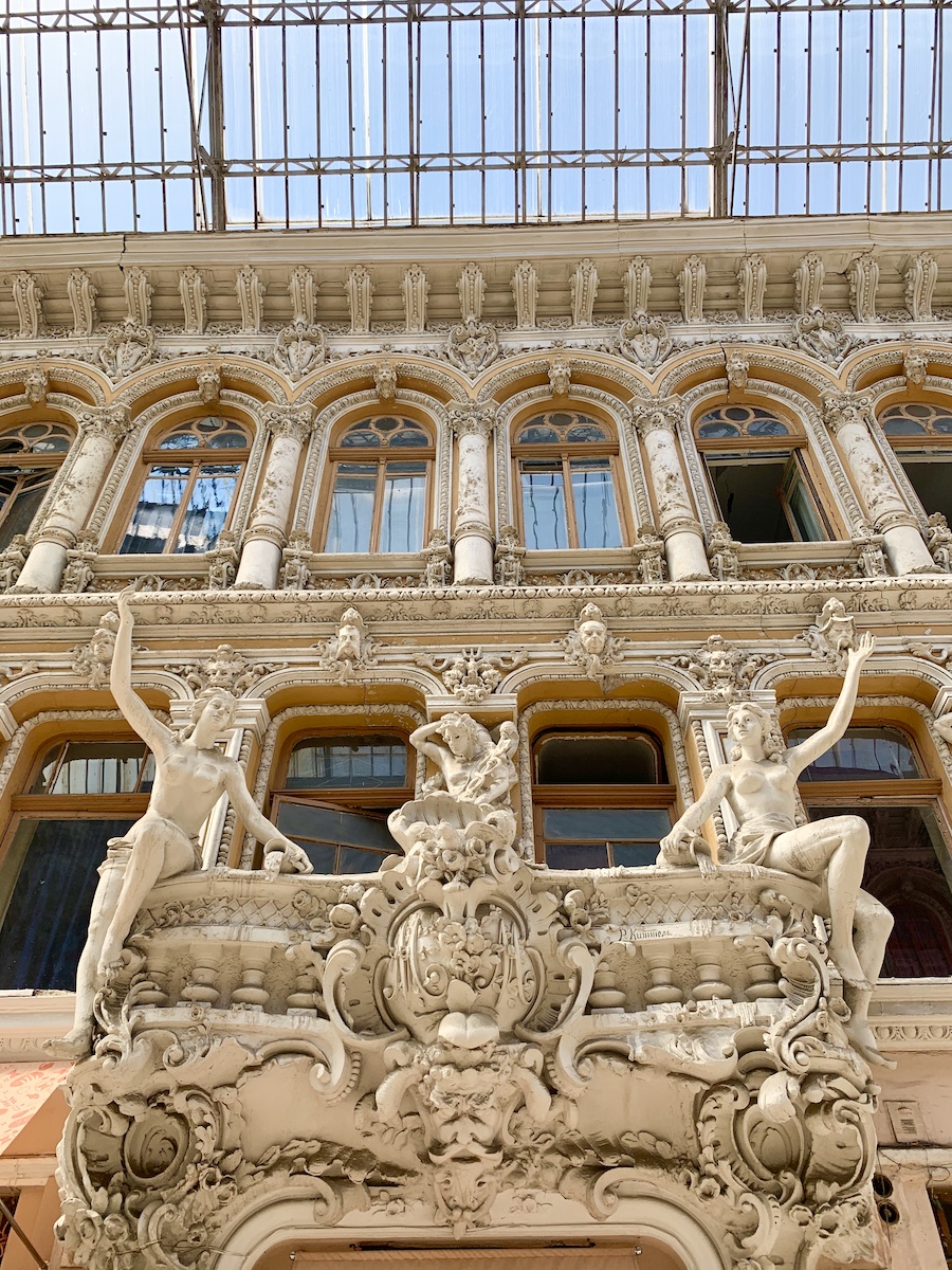 Если уж вы оказались в Одессе, то гулять ее нужно постепенно, пешком. Вот прекрасный Пассаж, построенный всего за год. Кариатиды и атланты украшают многие здания в центре города. И если присмотреться внимательно, их лица разных национальностей (коих и в современной Одессе проживает около ста сорока!). Вот атланты-поляки, вот – французы, а вот головы китайцев, украшающие двор некогда прекрасного отеля в Пассаже. Строили здесь по принципу «нам не надо красиво, нам надо шикарно». Строили из ракушника, который здесь же и добывали: вырывали камень в катакомбах, обтёсывали и строили дома. Общая протяженность таких «лабиринтов» составляла 3000 км – это как от Одессы до Парижа. В этих же самых катакомбах началась история контрабандистов. Портовый город принимал корабли с диковинными грузами со всего мира. К слову, ввоз был беспошлинным – купить товары можно было за копейки, но при условии, что они для личного пользования. Если же их везли дальше по Империи с целью продажи по высокой цене, налоги были неизбежны. Так, золото в Одессу текло рекой. Как только ни пытались обмануть работников таможни! Дамы в кринолинах пытались вывозить рулоны тканей, сахарные головы. У одной контрабандистки под юбкой каминные часы предательски пробили полдень. И посему был издан указ – ощупывать всех подозрительных дам. Дело интересное, поэтому решительно все дамы вызывали подозрение.