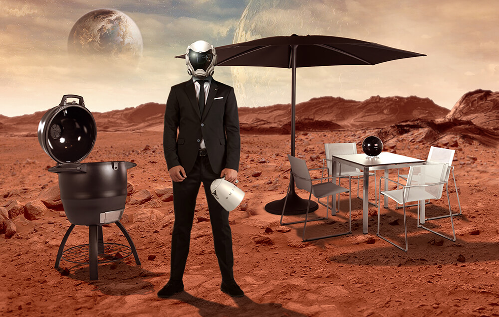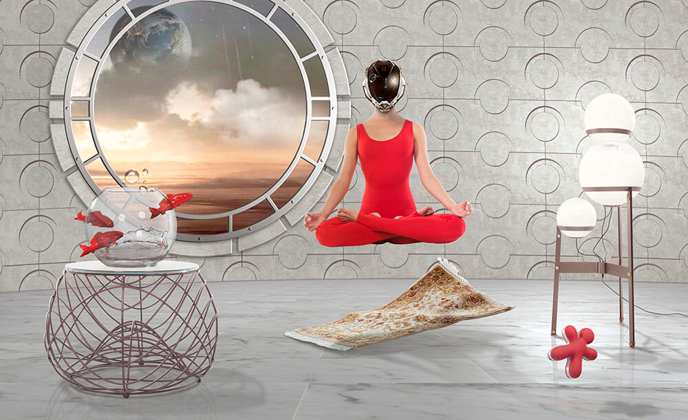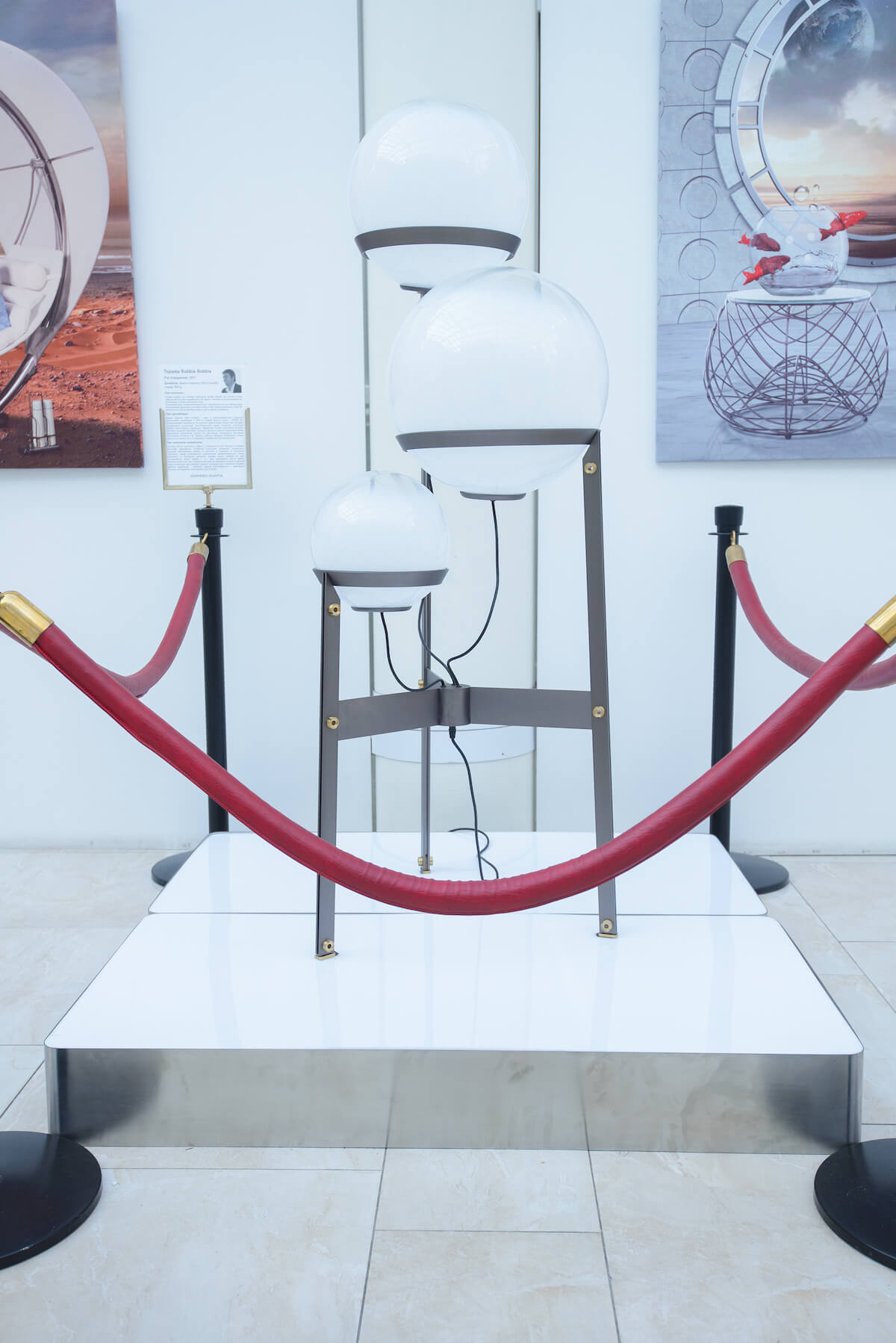 Виставка складається з чотирьох частин: «Інша планета», «Паралельний світ», «Віртуальна реальність» та «Майбутнє». В експозиції задіяні легендарні предмети від найвідоміших дизайнерів, серед яких Egg chair Арне Якобсена, Lounge chair & ottoman подружжя Чарльз та Рей Імзи, ваза Bacchantes Рене Лаліка, торшер з колекції Beatlight Тома Діксона. Ці та інші предмети, відображені на полотнах, знаходяться в постійних експозиціях у музеях та галереях сучасного мистецтва у Нью-Йорку, Лондоні, Парижі, Стокгольмі, Копенгагені.