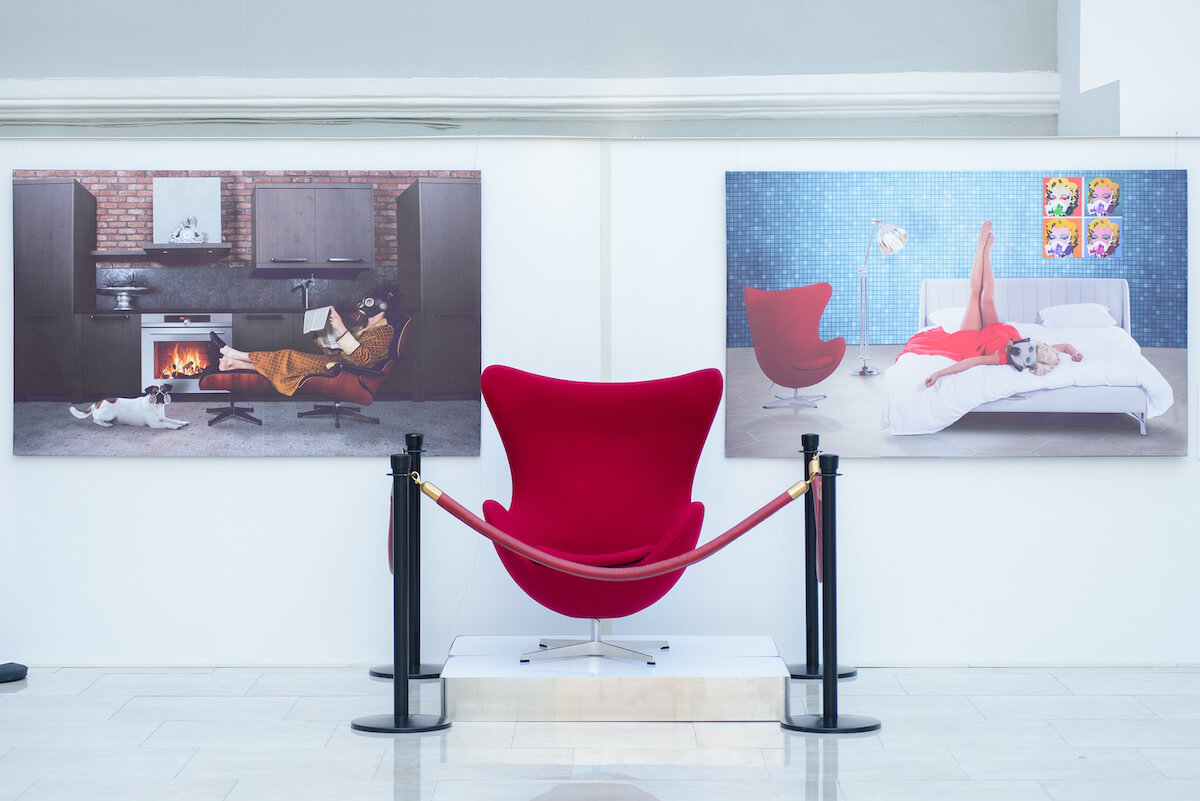 Для створення образів було обрано як культові об’єкти, так і звичайні речі, якими ми користуємося повсякденно, але навіть не замислюємося, що вони теж є витворами дизайну – чайник, парасолька від сонця, диван, торшер, ванна та інші.