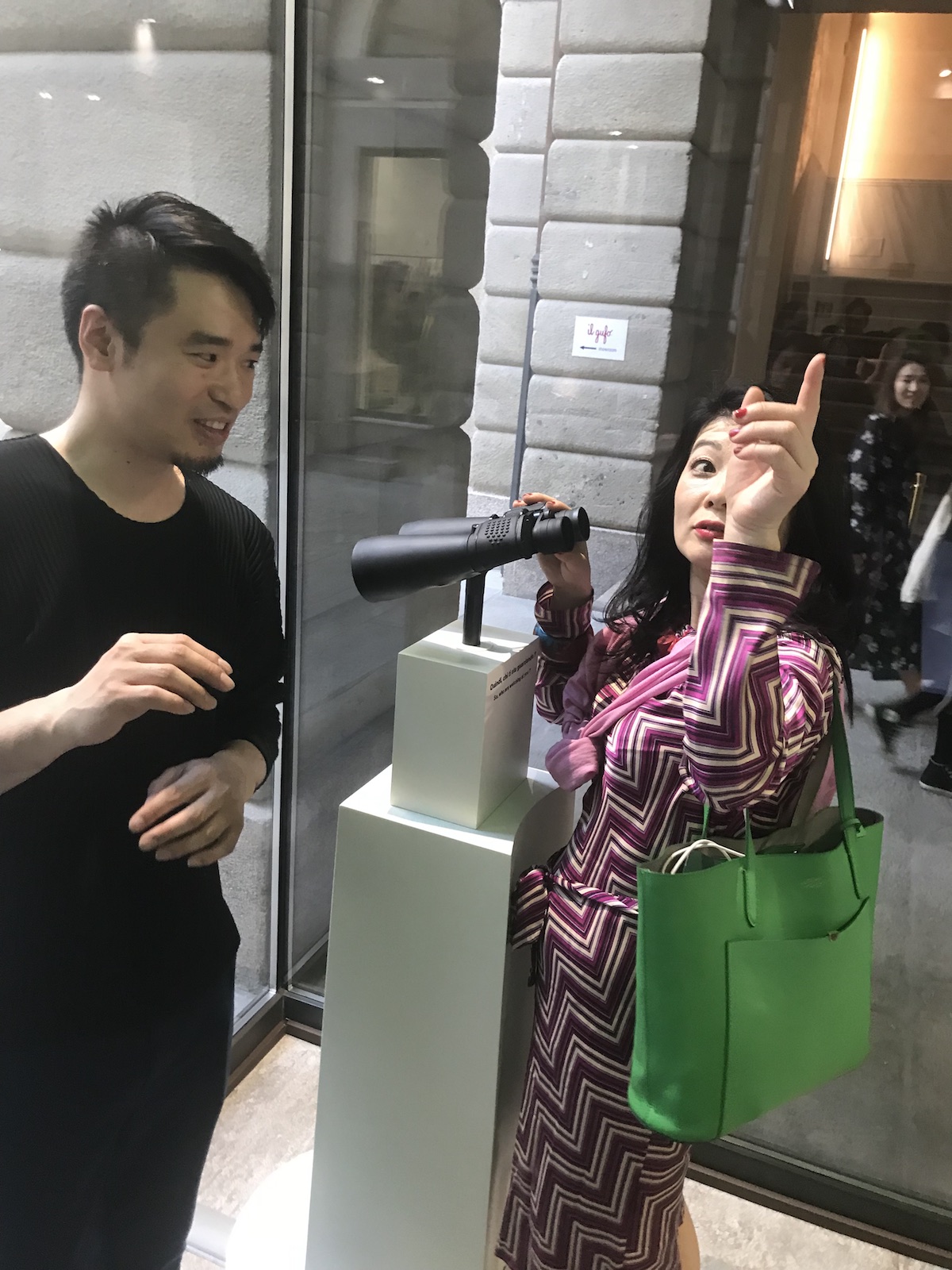 В изысканном и огромном пространстве в самом центре Милана находится флагманский магазин Иссэйя Миякэ, где знаменитый и культовый японский дизайнер 17 апреля открыл выставку «My First Me, Know Yourself Like Never Before», посвященную восприятию реальности через призму современных технологий. Являясь одним из самых интересных событий Недели дизайна в Милане, выставка была представлена в четырех инсталляциях Масахико Сато - профессора новых медиа и телевидения Токийского университета. Выставка являет собой взаимодействие идей, взятых из его последней книги «Новые способы понимания», интерактивные инсталляции c примененеем новых технологий приведут к восприятию ранее никогда неощущаемых чувств, к чувствам творческим, которые существуют вне гражданства и расы.